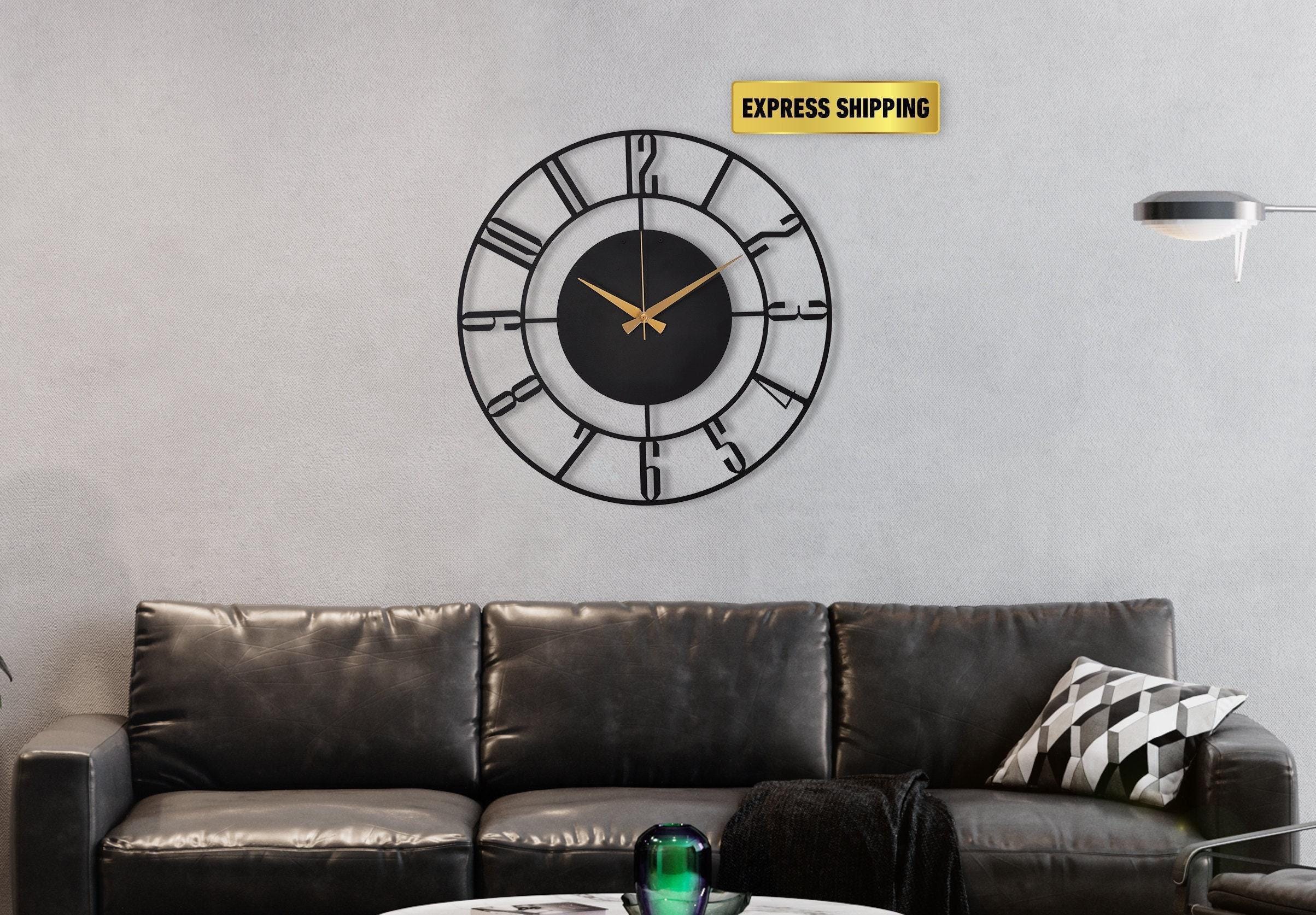 Black Metal Large Wall Clock, Oversize Silent Clock, Unique Art Hom...
