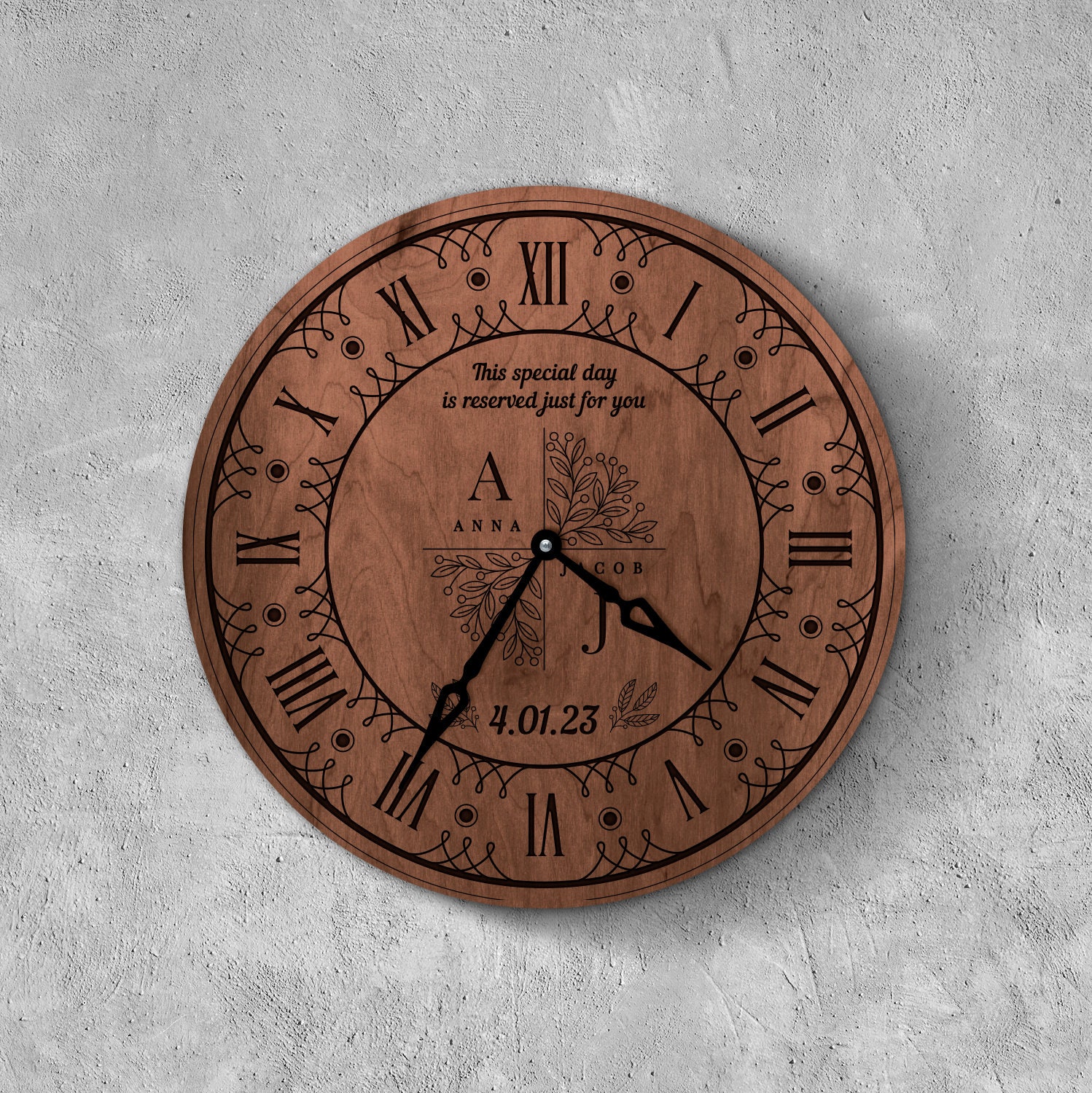Capture the essence of your love story with our exquisite custom wedding wood clock, a timeless keep...