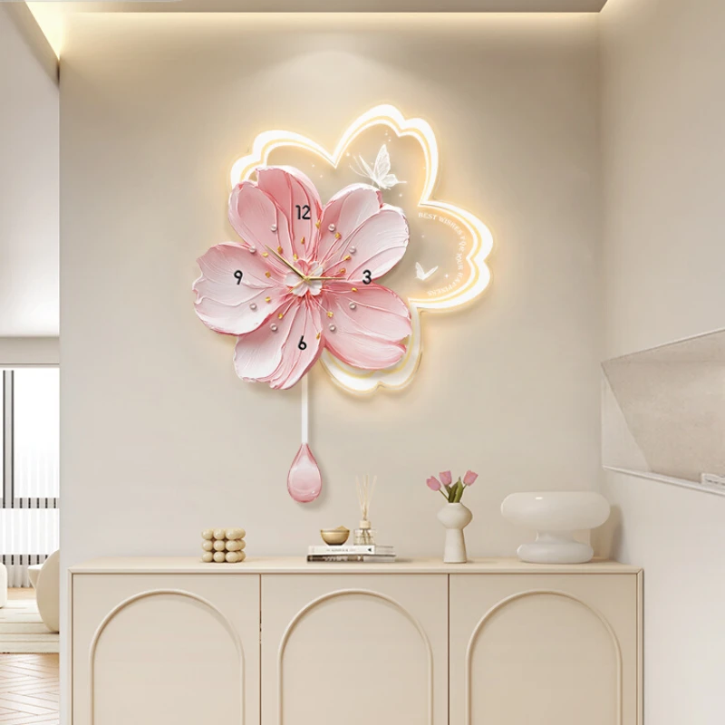 Home Decor Cream Style Decorative Painting with LED Lights Wall Clock Living Room Decoration Premium...