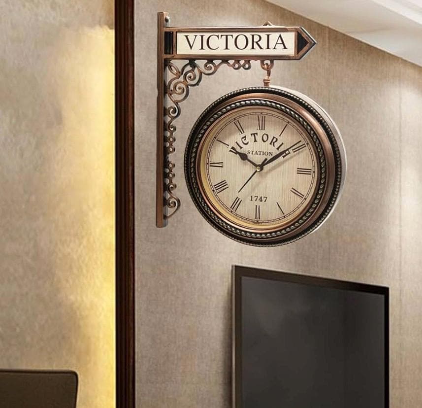 Wall Clock Retro Double-Sided Wall Clock Battery Operated Silent St...