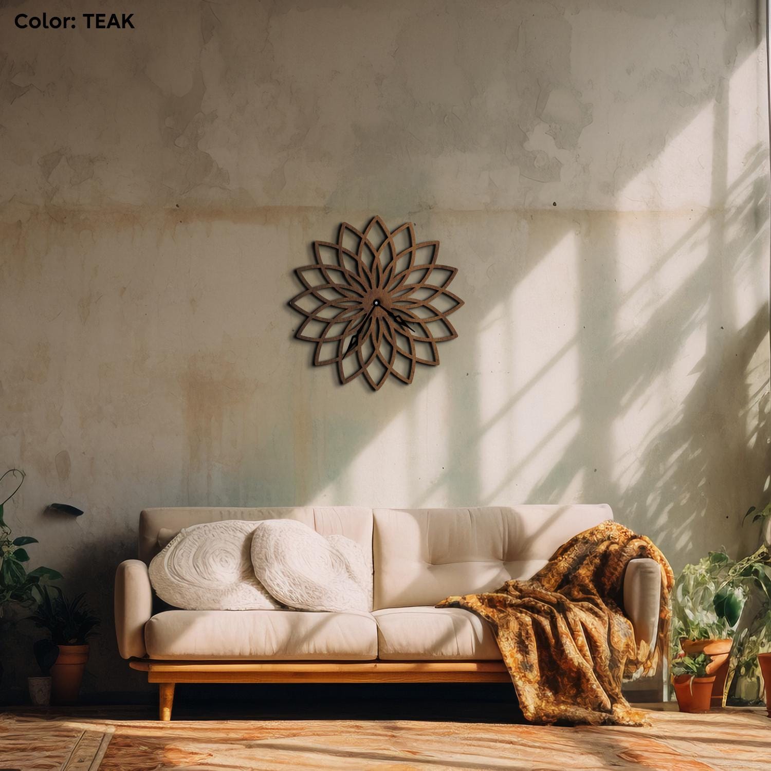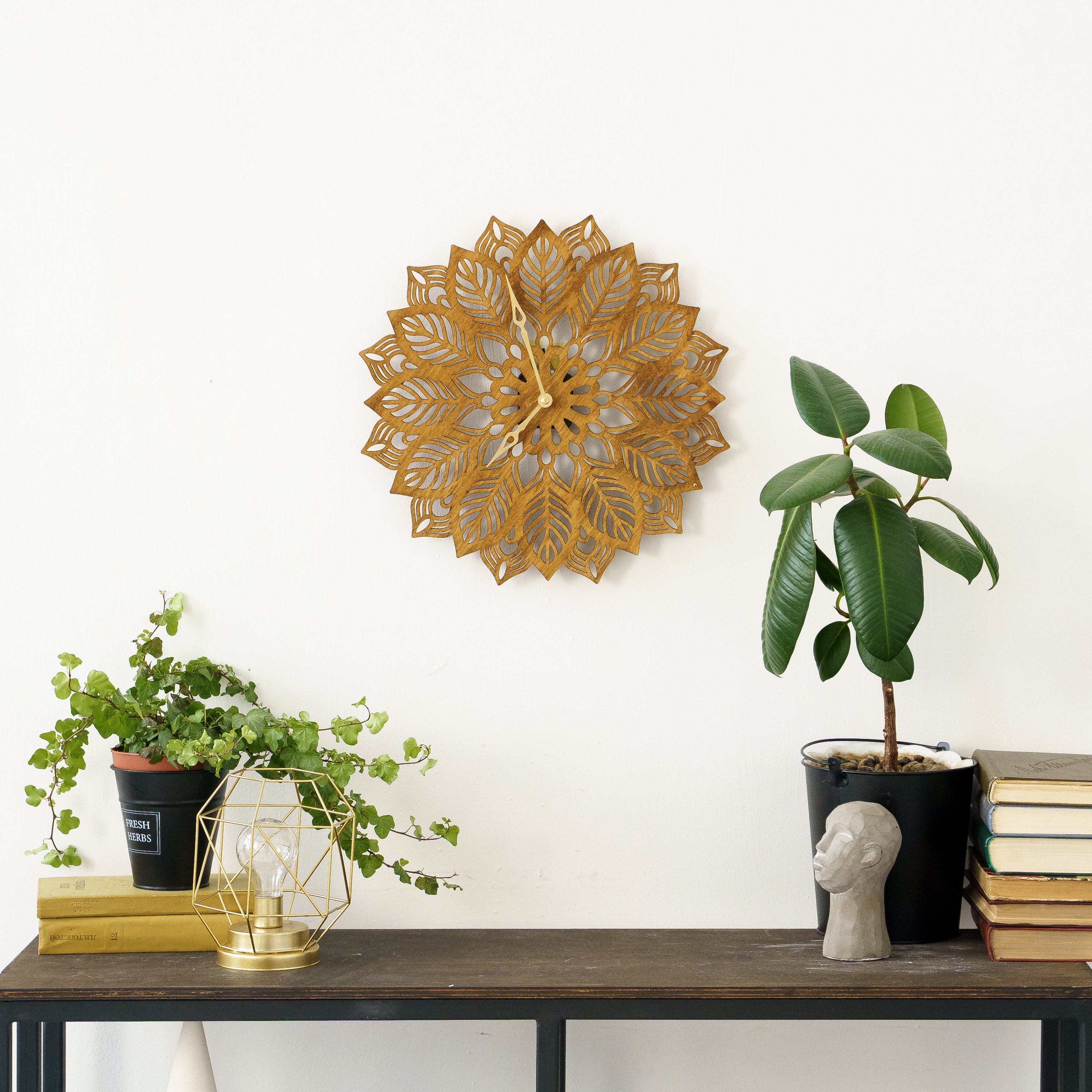 Mandala wall clock wooden, Floral wall clock, Boho wall clock wood,...