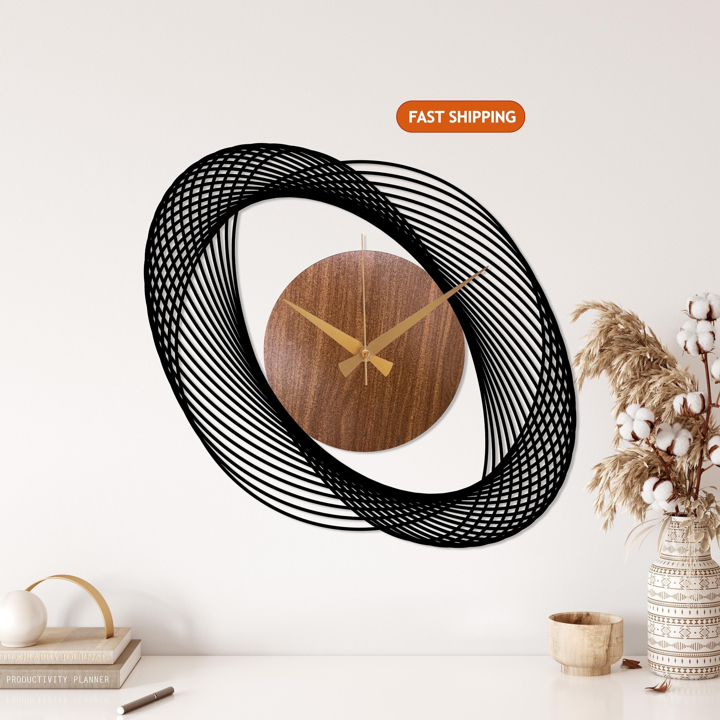 Modern Geometric Wood and Metal Wall Clock, Wood Clock Gift, Spiral...