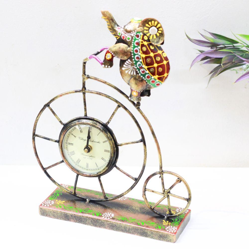 Handmade Elephant Clock on Vintage Bicycle: Indian Metal Art Handma...