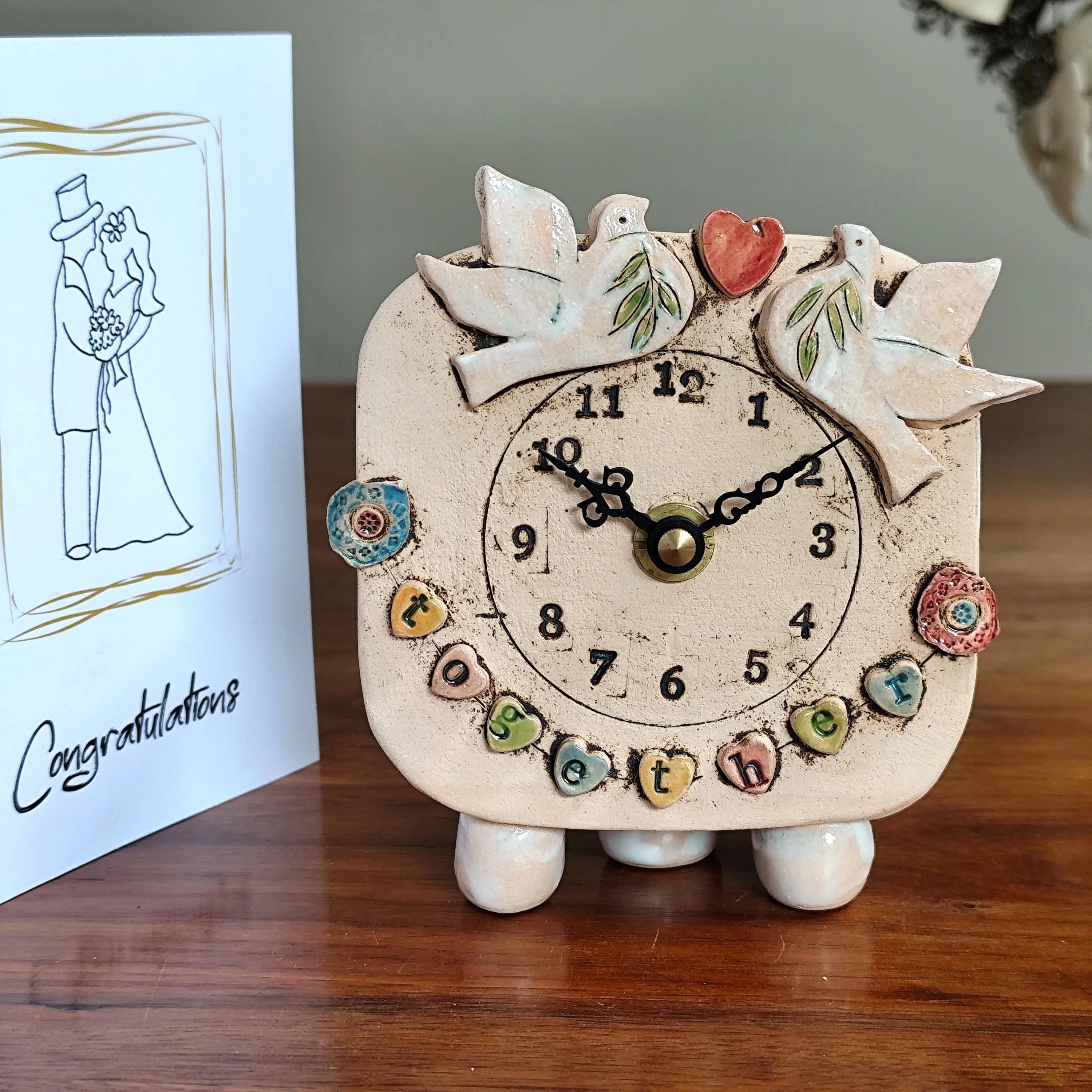 Wedding handmade analogue clock for couples. Unusual, unique potter...