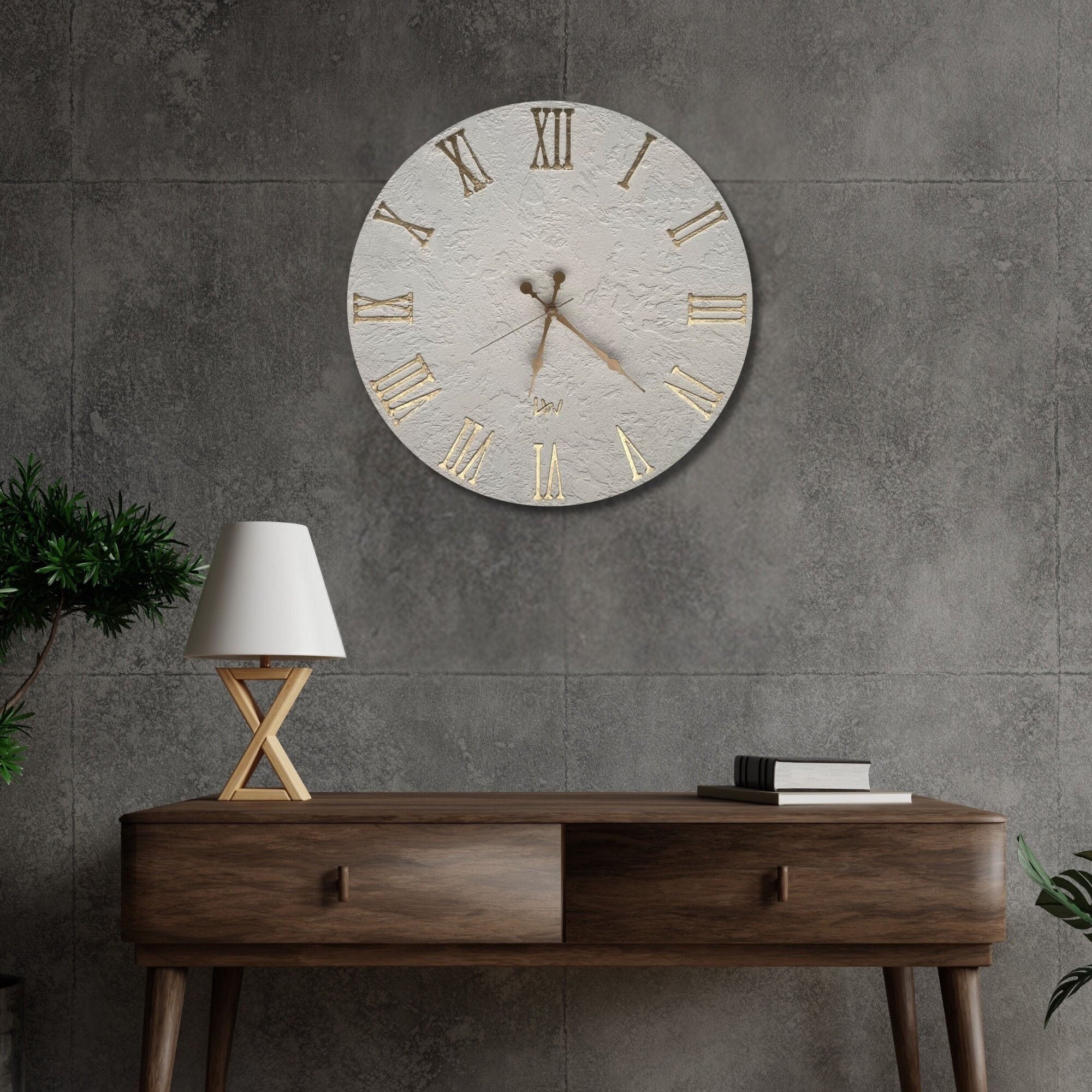 Unique Handmade Textured Wall Clock with Italian Travertine, Hand m...