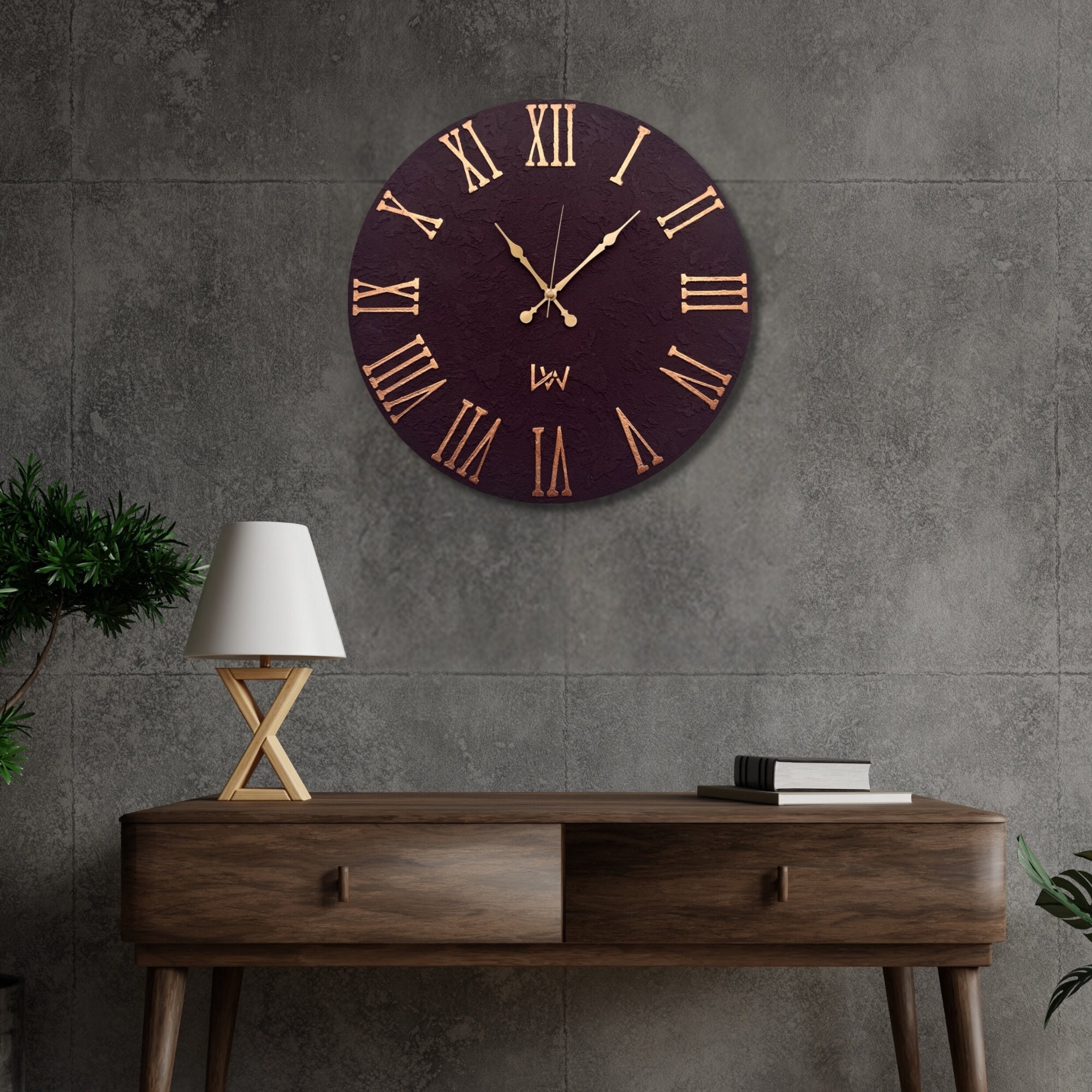 Unique Handmade Textured Wall Clock with Italian Travertine, Burgun...
