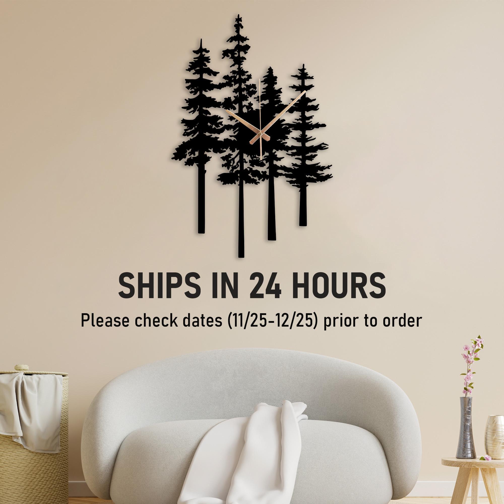 Pine Tree Forest Design Metal Wall Clock, Nature Clock Gift, Nature...