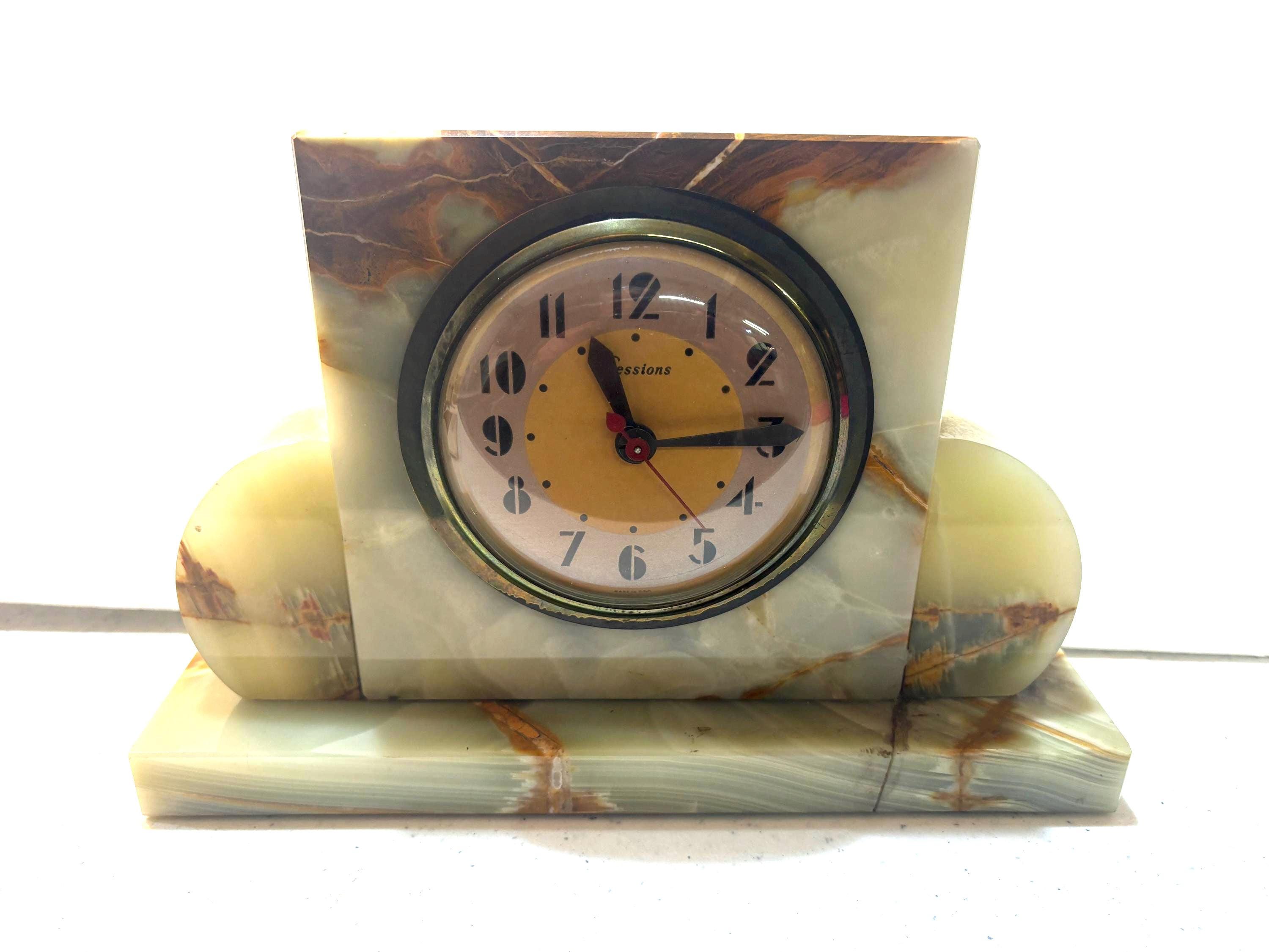 An art deco Sessions alabaster stone desk clock. A great mantle or shelf clock in working condition,...