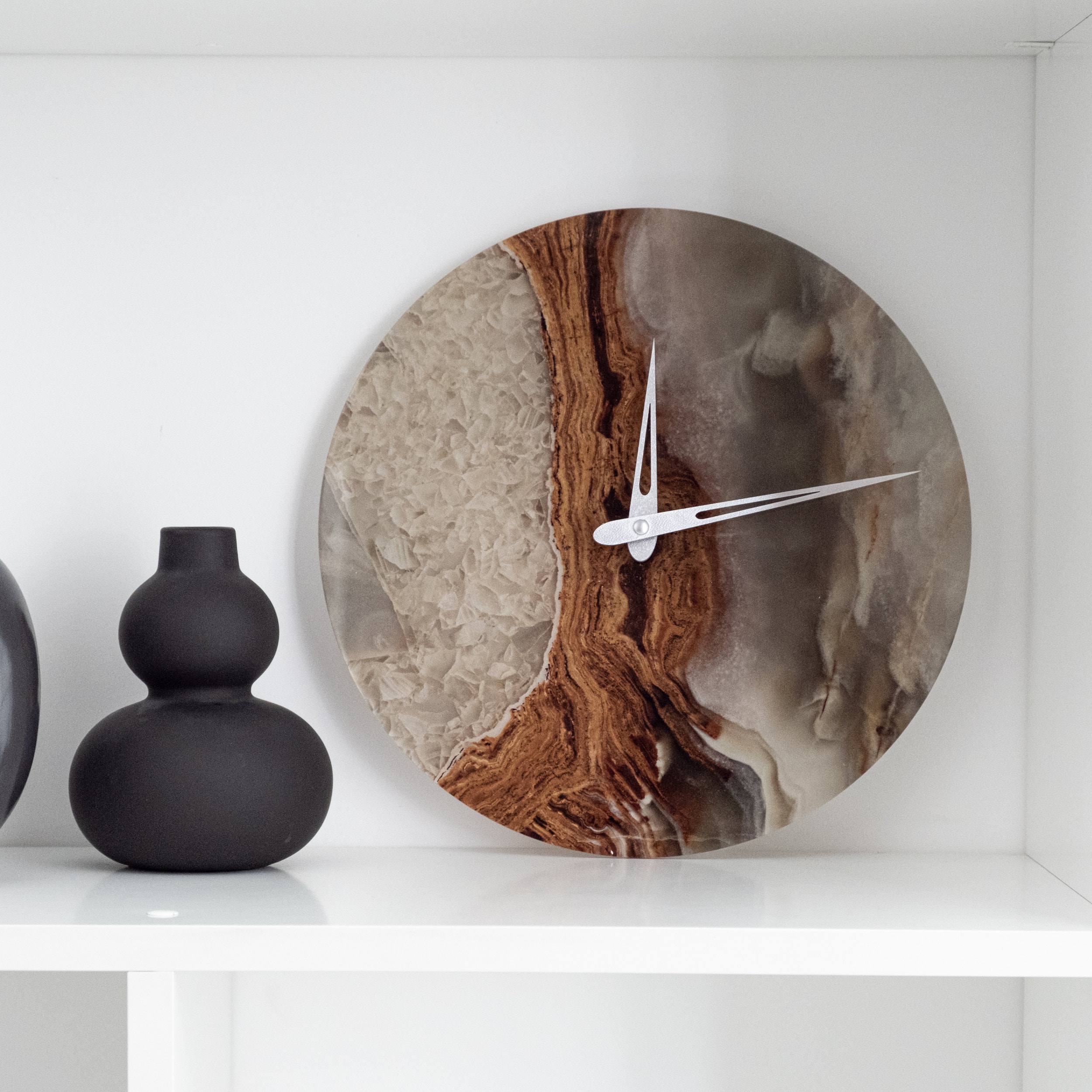 White marble resin wall clock, Grey marble wall clock, Masselina ma...