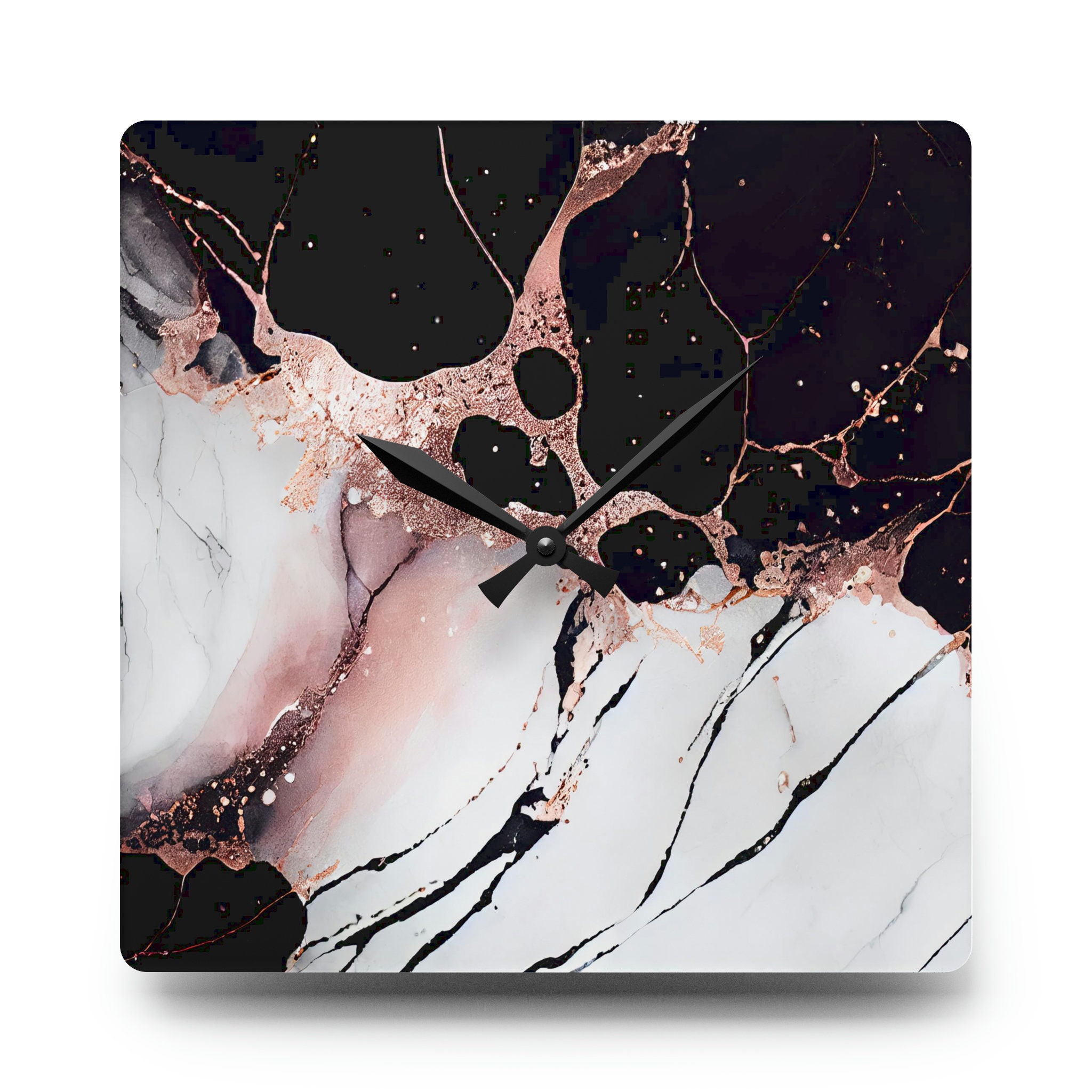 Rose Gold Marble Art Wall Clock | Black Pink Clock | Black Wall Clo...