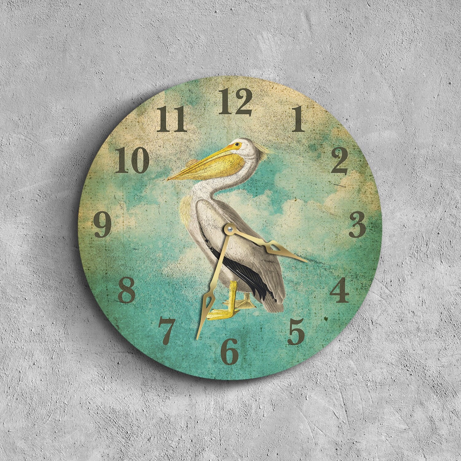 Pelican wall clock, Coastal wall clock, Beach themed clock, Beach w...