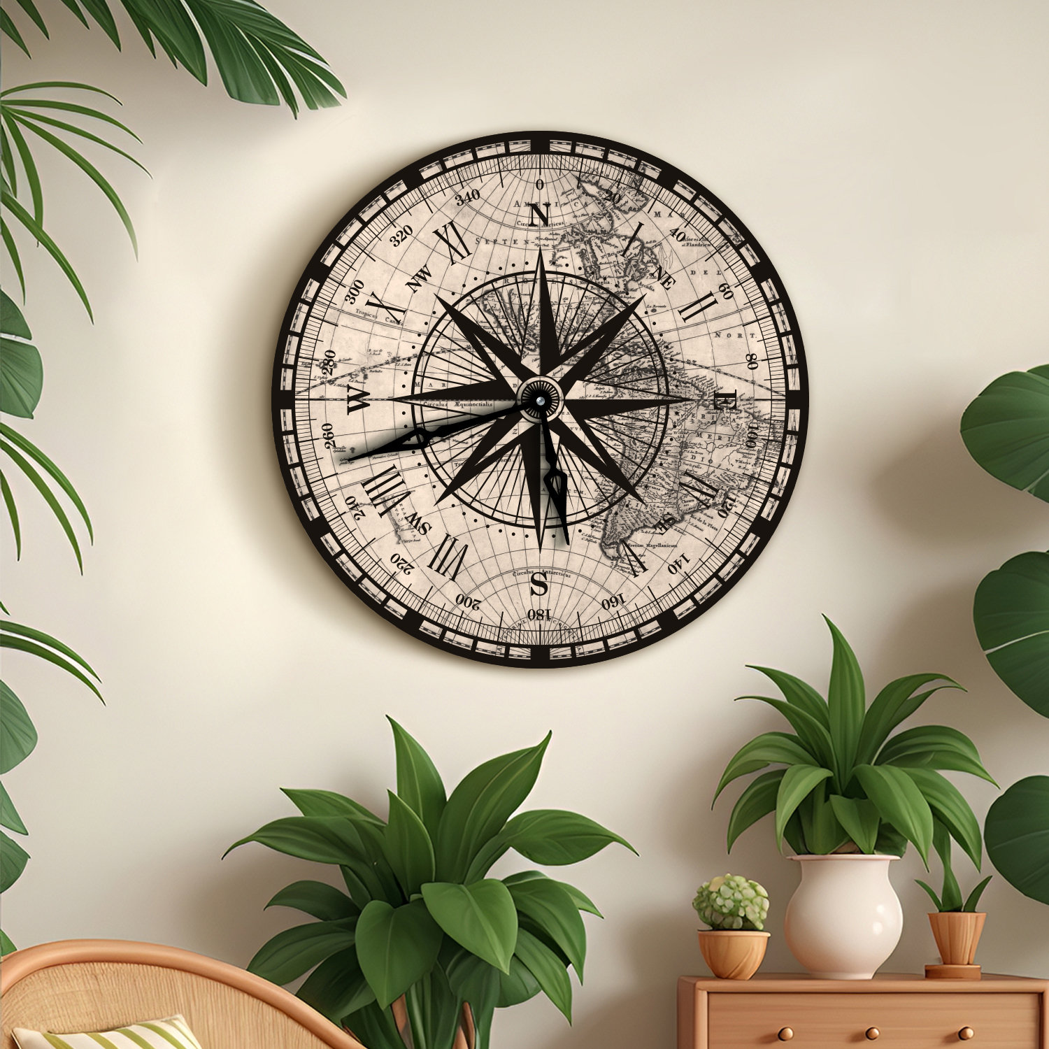 Compass wall clock,Compass rose clock,World map clock,Rose wind clo...