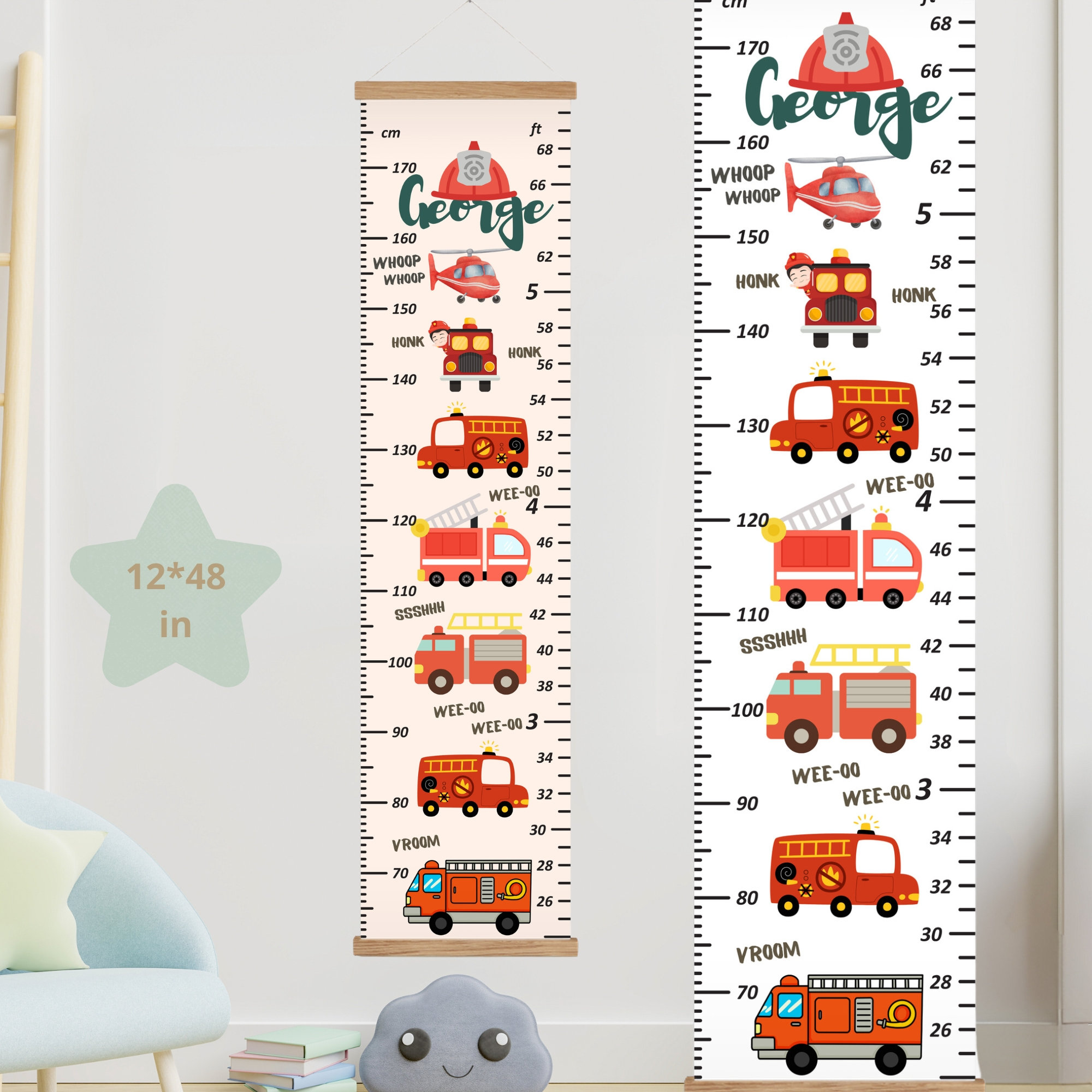 Growth Chart Fire Truck Bedroom Wall Decor Gift Fire Station Height...