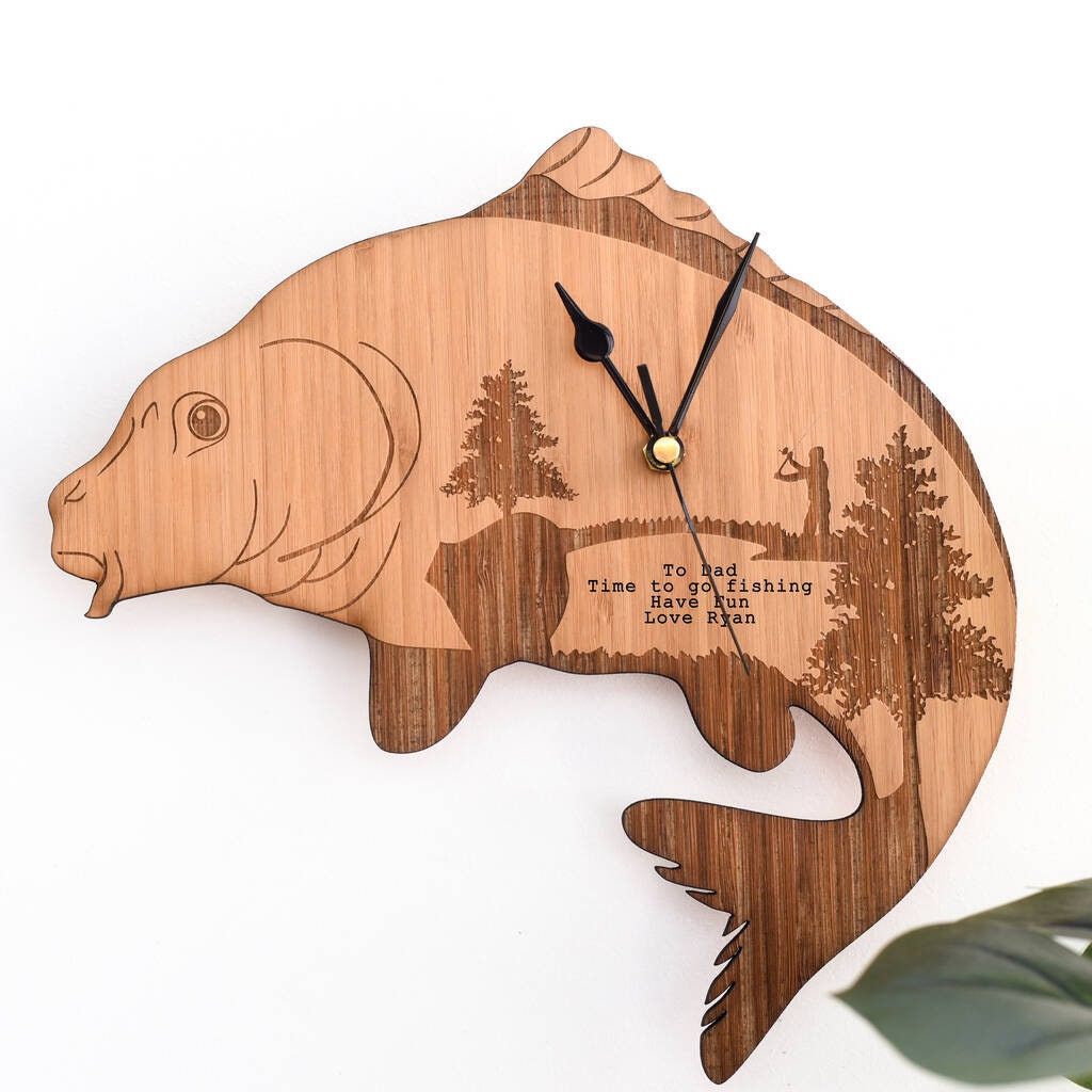 Our beautifully engraved wooden carp clock makes the perfect gift for any anglers, especially for Fa...