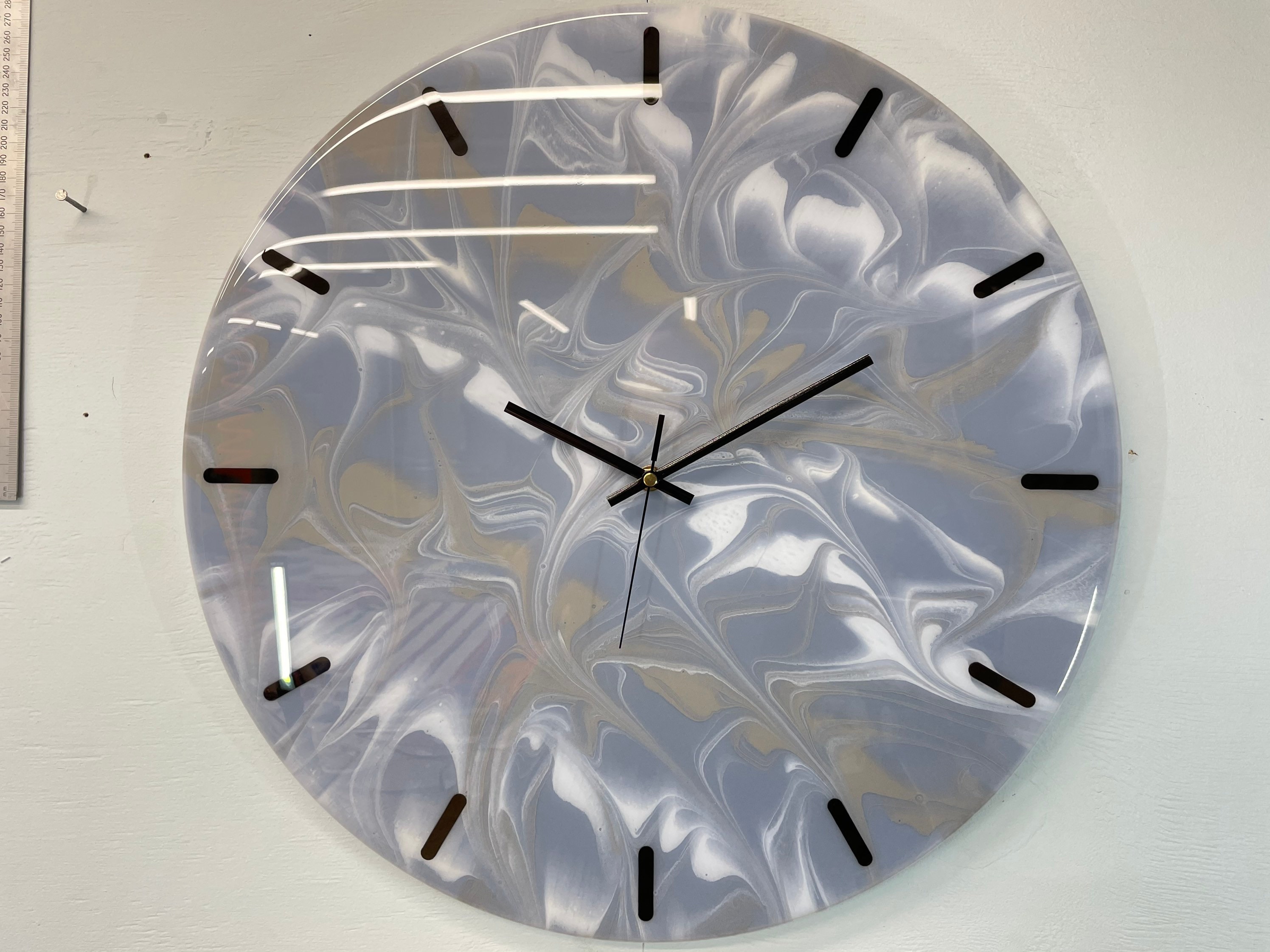"50cm Large Grey And White Modern Resin Wall Clock The abstract patterns created when mixing pe...