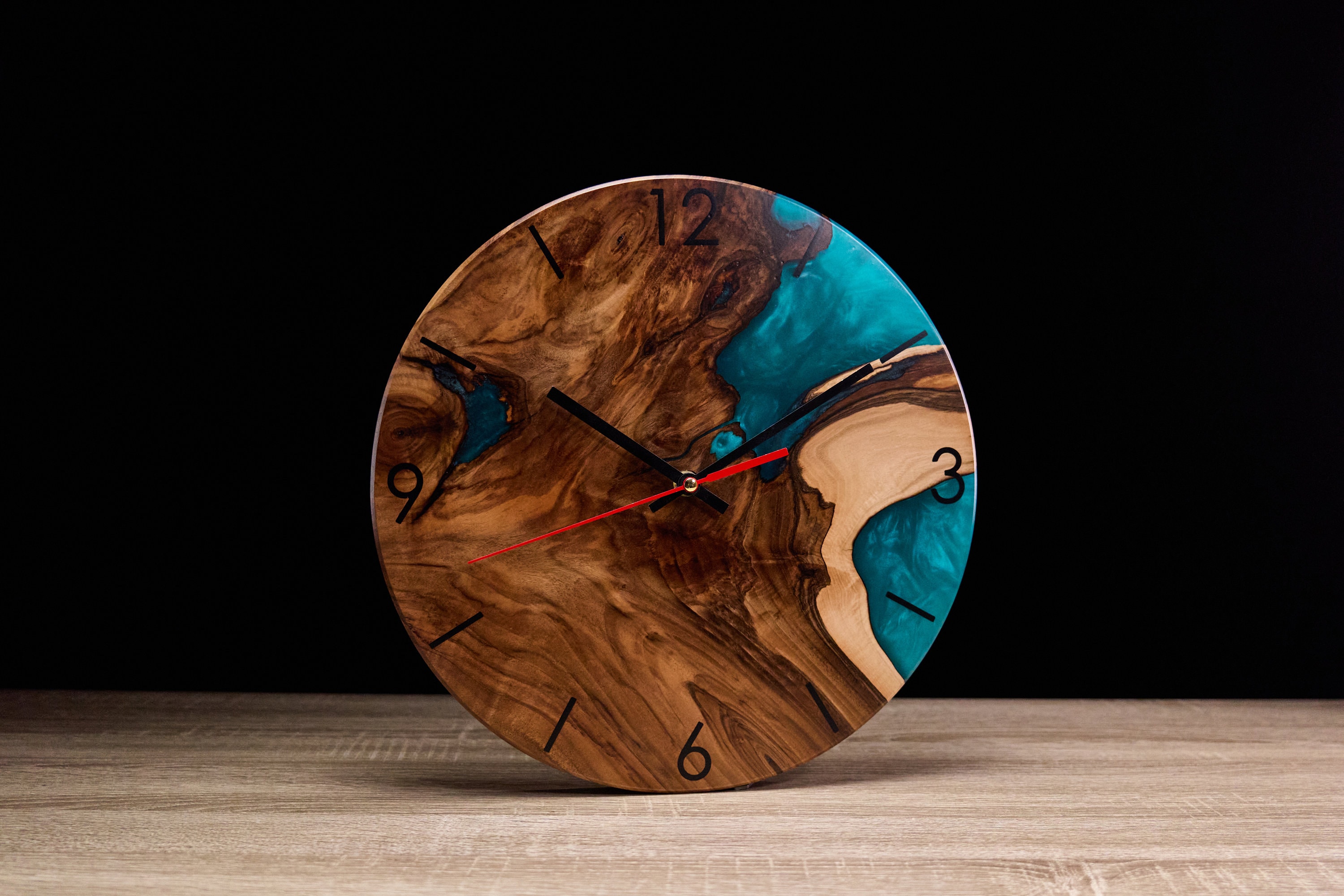 Handmade Wooden Wall Clock - Walnut Wood & Epoxy Resin, Modern ...