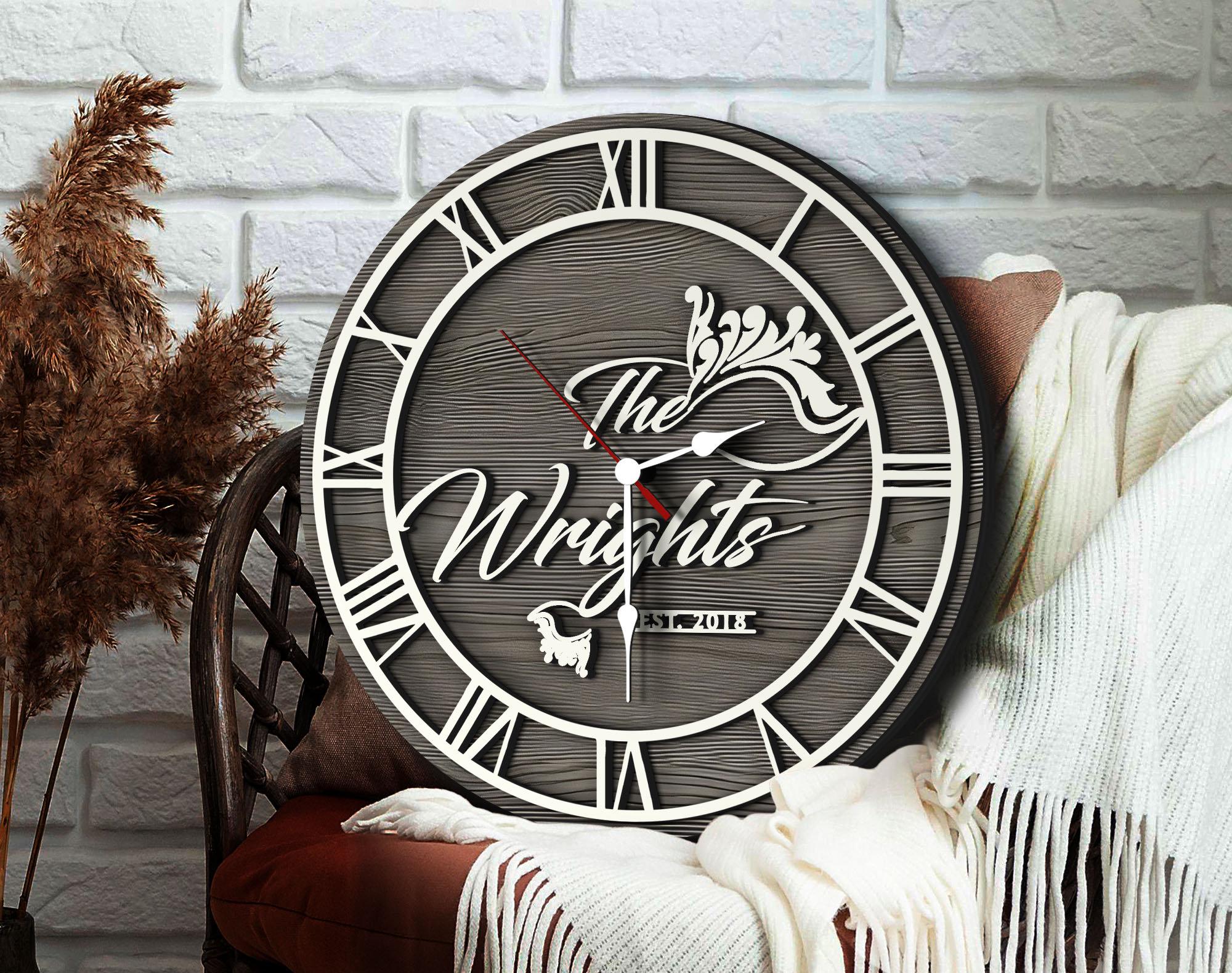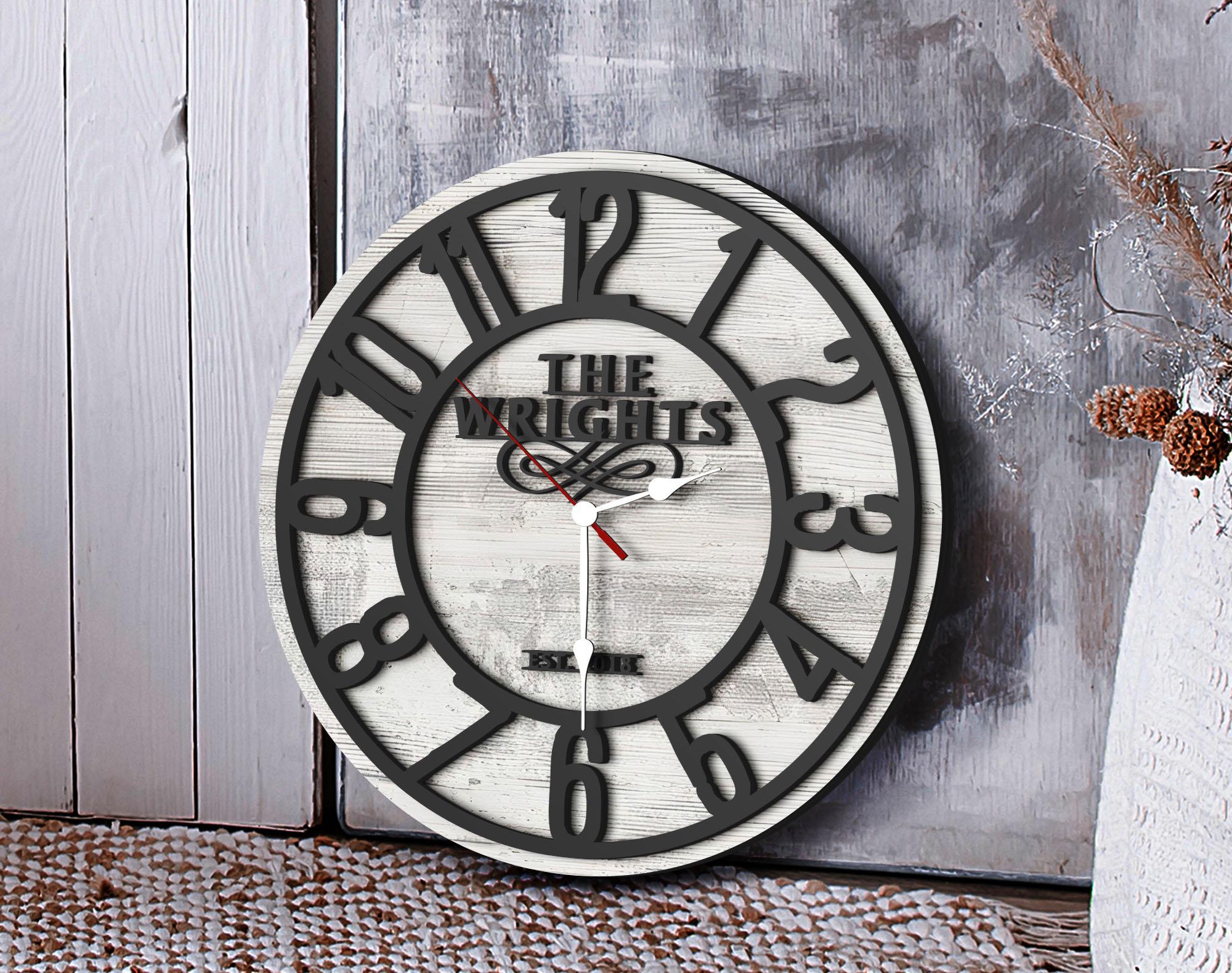 Personalized Wedding Gift, Round Wooden Wall Clock, Last Name Estab...