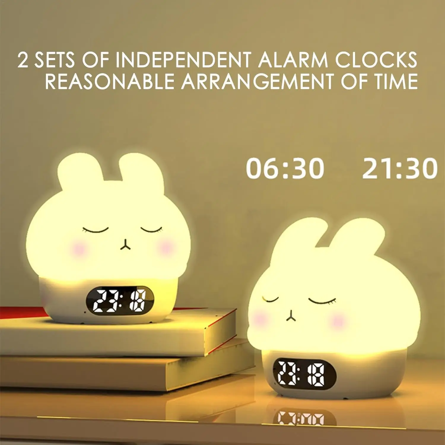 Cute Rabbit Night Light Digital Alarm Clock Electronic Desktop Clock Bedroom Timer Bedside Table Clo...