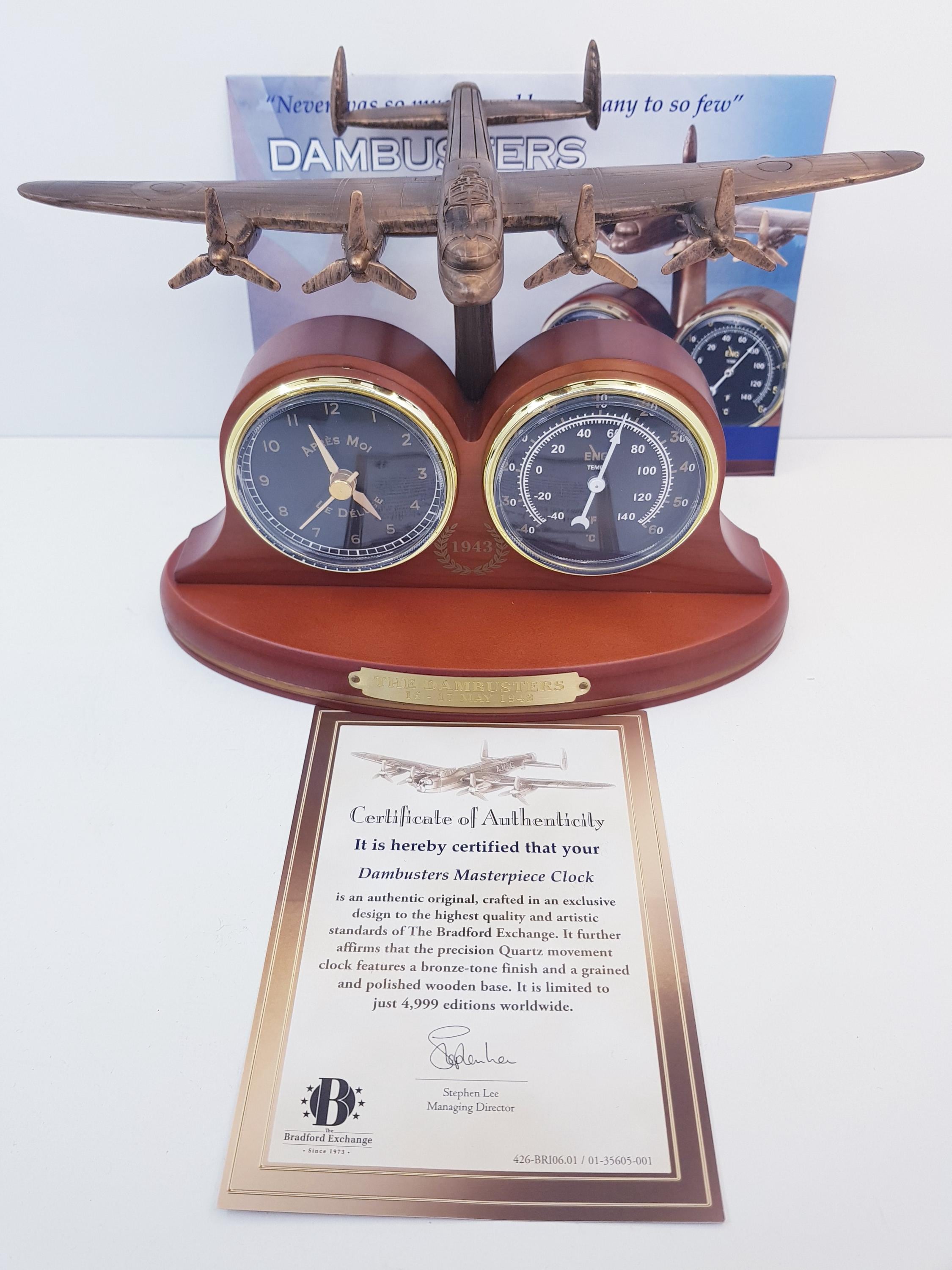 70th Anniversary Lancaster Bomber clock/barometer with COA and post...