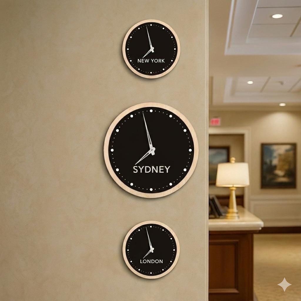 "Custom Time Zone Wall Clock Set - Personalized World Clock Display Bring global charm and orga...
