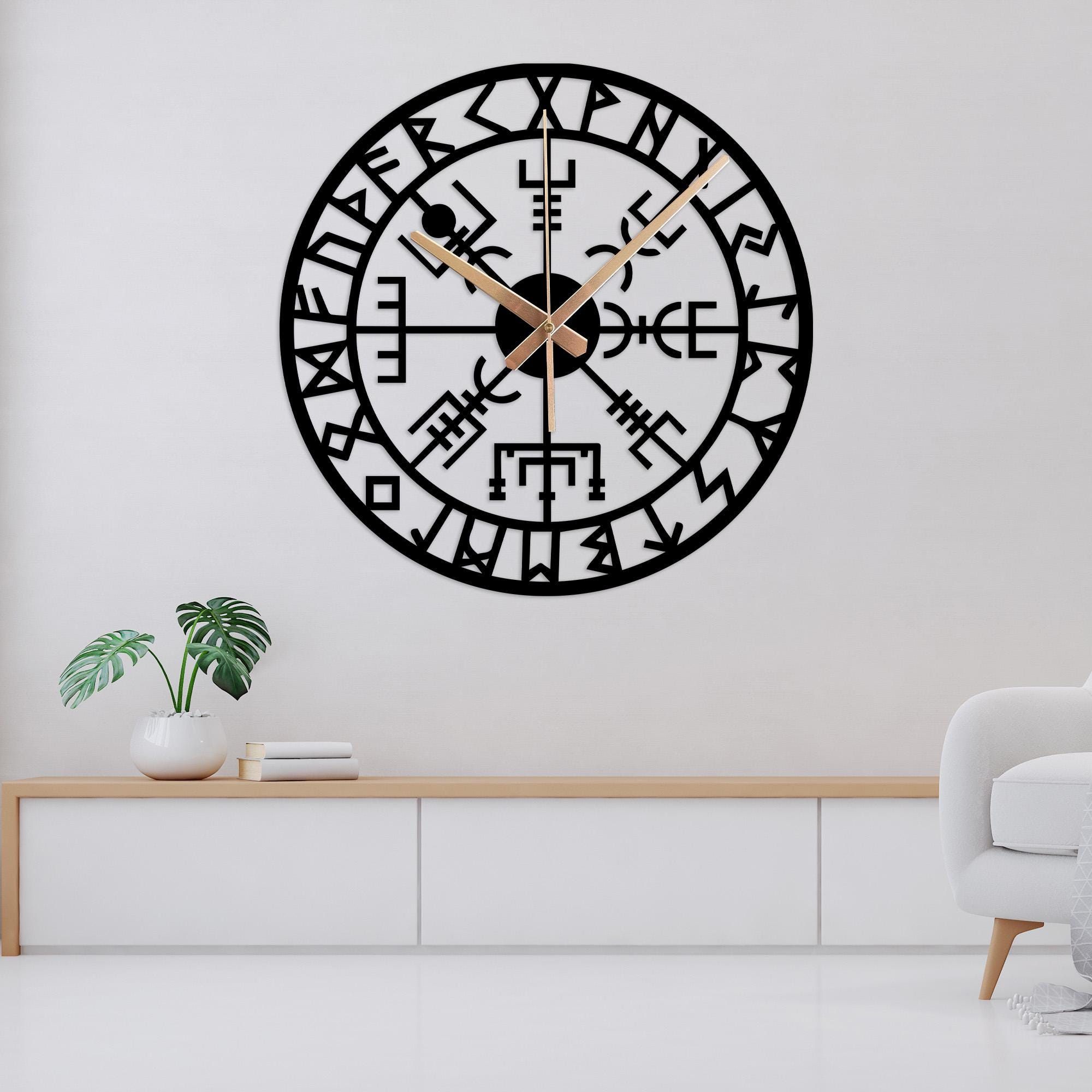 Viking Vegviser Black Metal Wall Clock, Modern Oversize Wall Clock,...