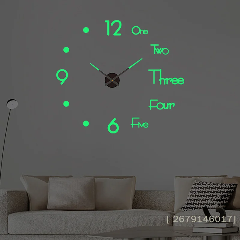 ​Luminous Wall Clock Digital Clock Wall Stickers Wall Clock For Living Room Home Decor Removab...