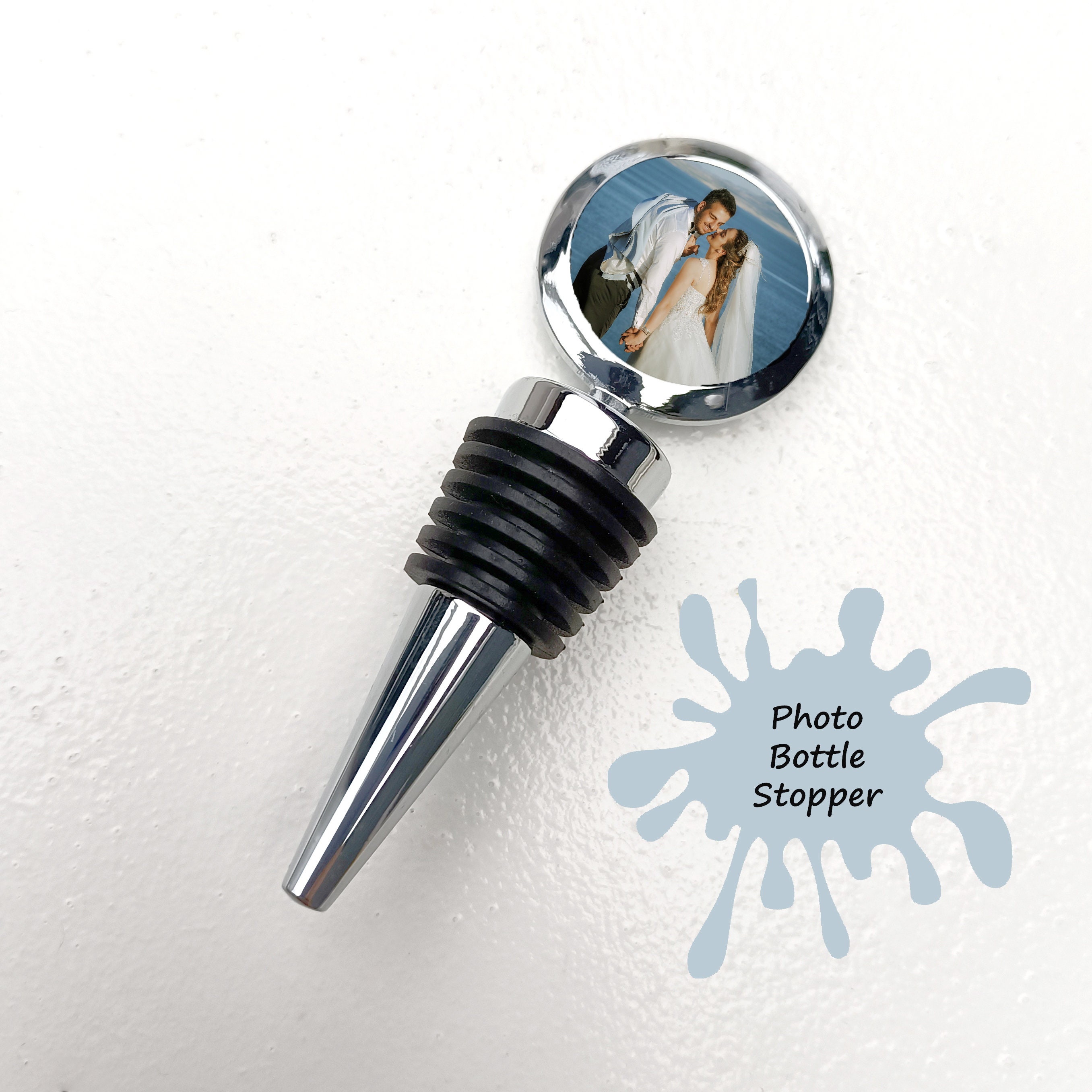 This photo bottle stopper features a photo of the happy couple. This wine stopper makes a lovely per...