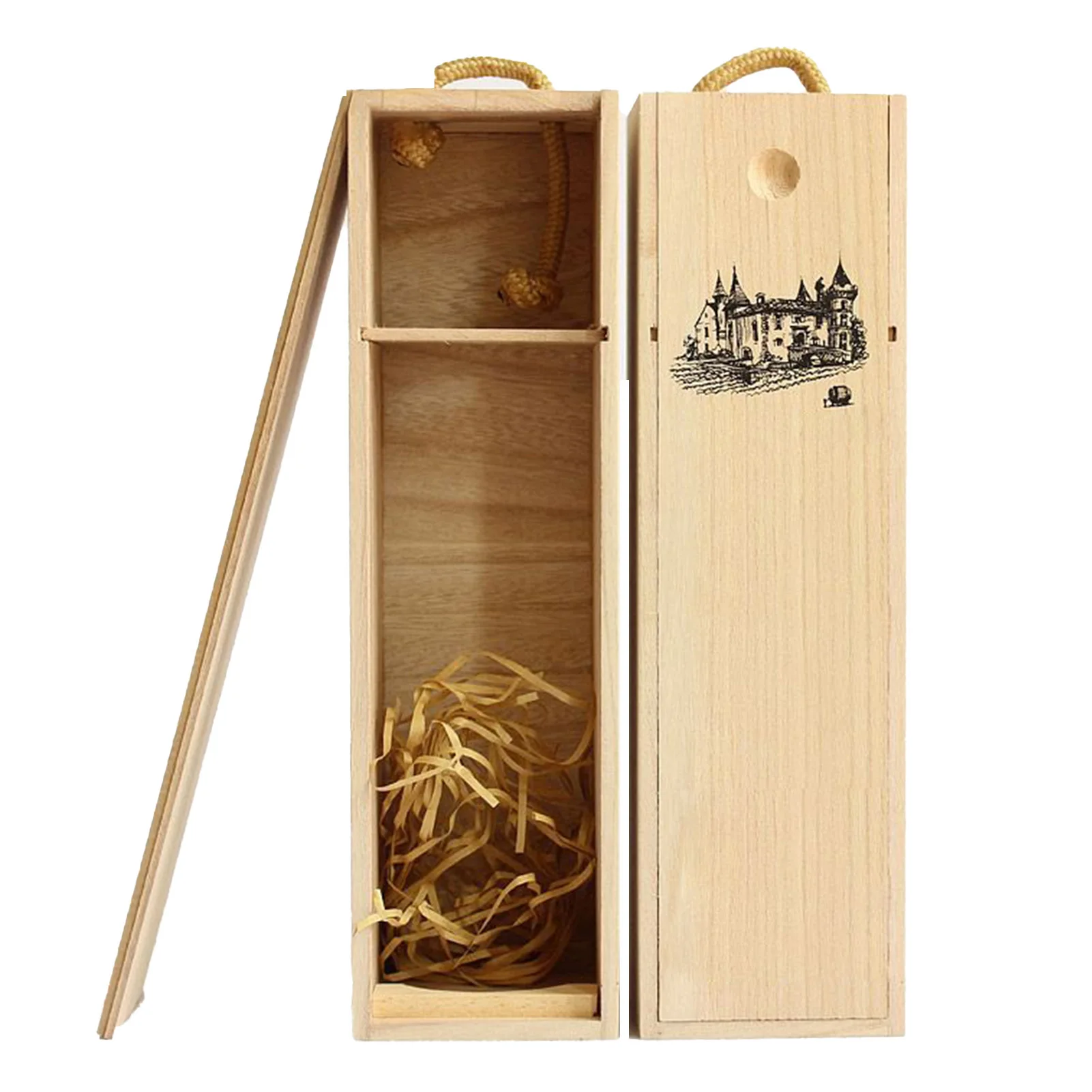 Single Bottle Wooden Wine Box with Lid Decorative Wood Grain Reusab...