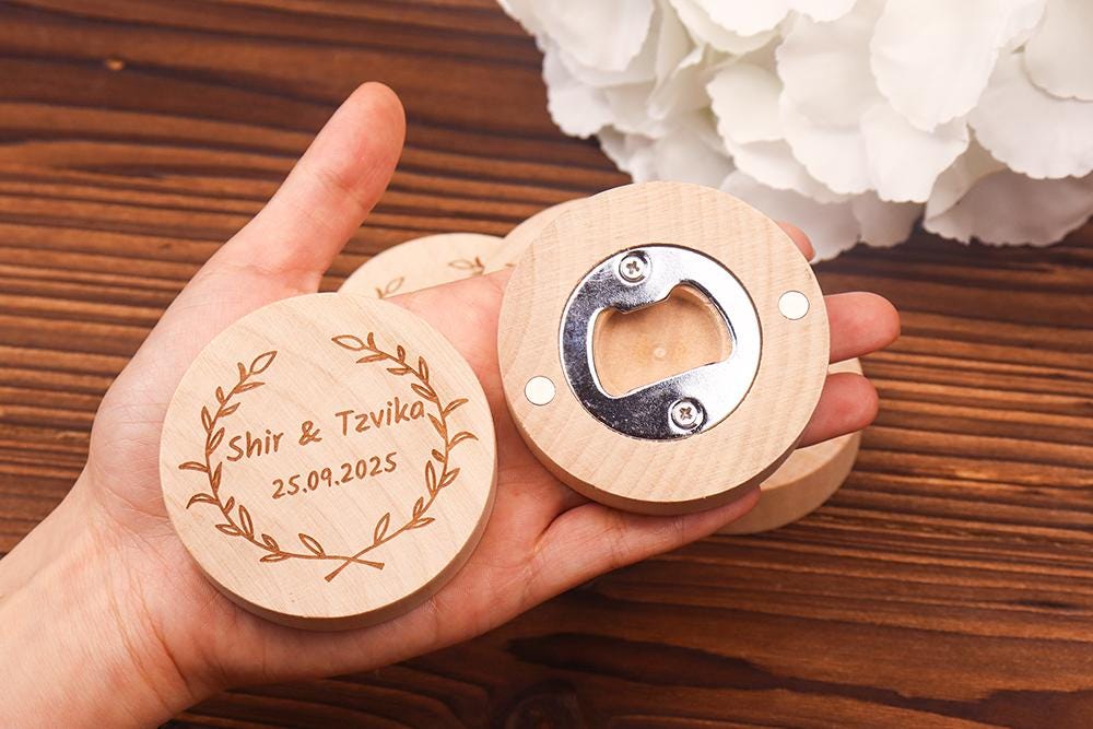 Personalised Bottle Opener Wedding Favours Fridge Stickers Wooden Magnetic Bottle Opener, Custom Par...