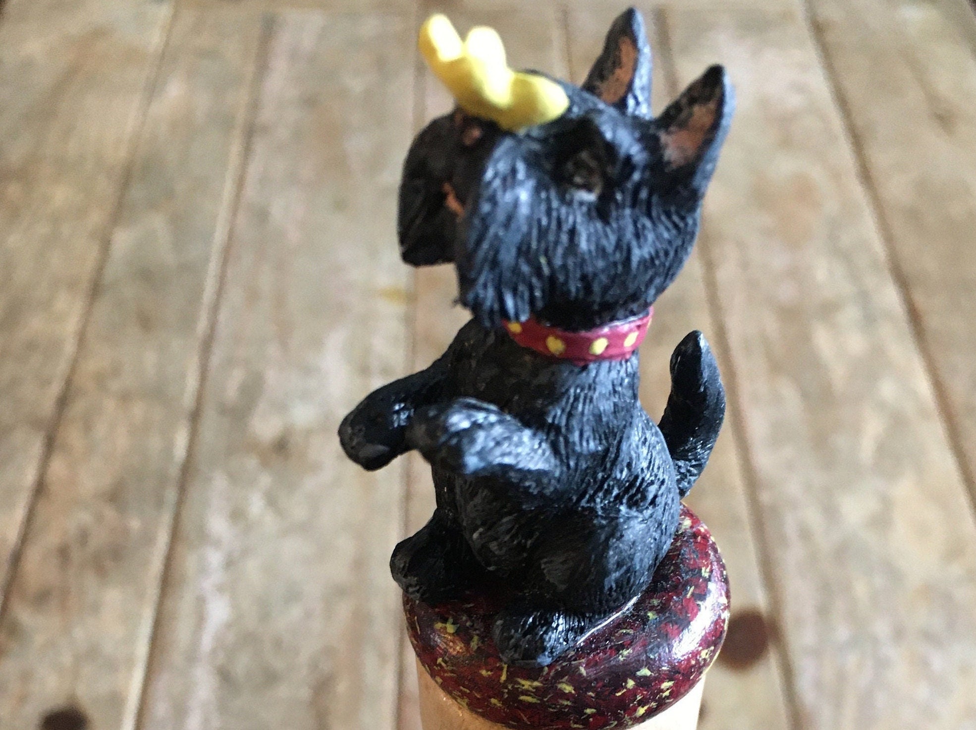 Dog Wine Bottle Stopper / Black Terrier Wine Bottle Stopper / Scott...