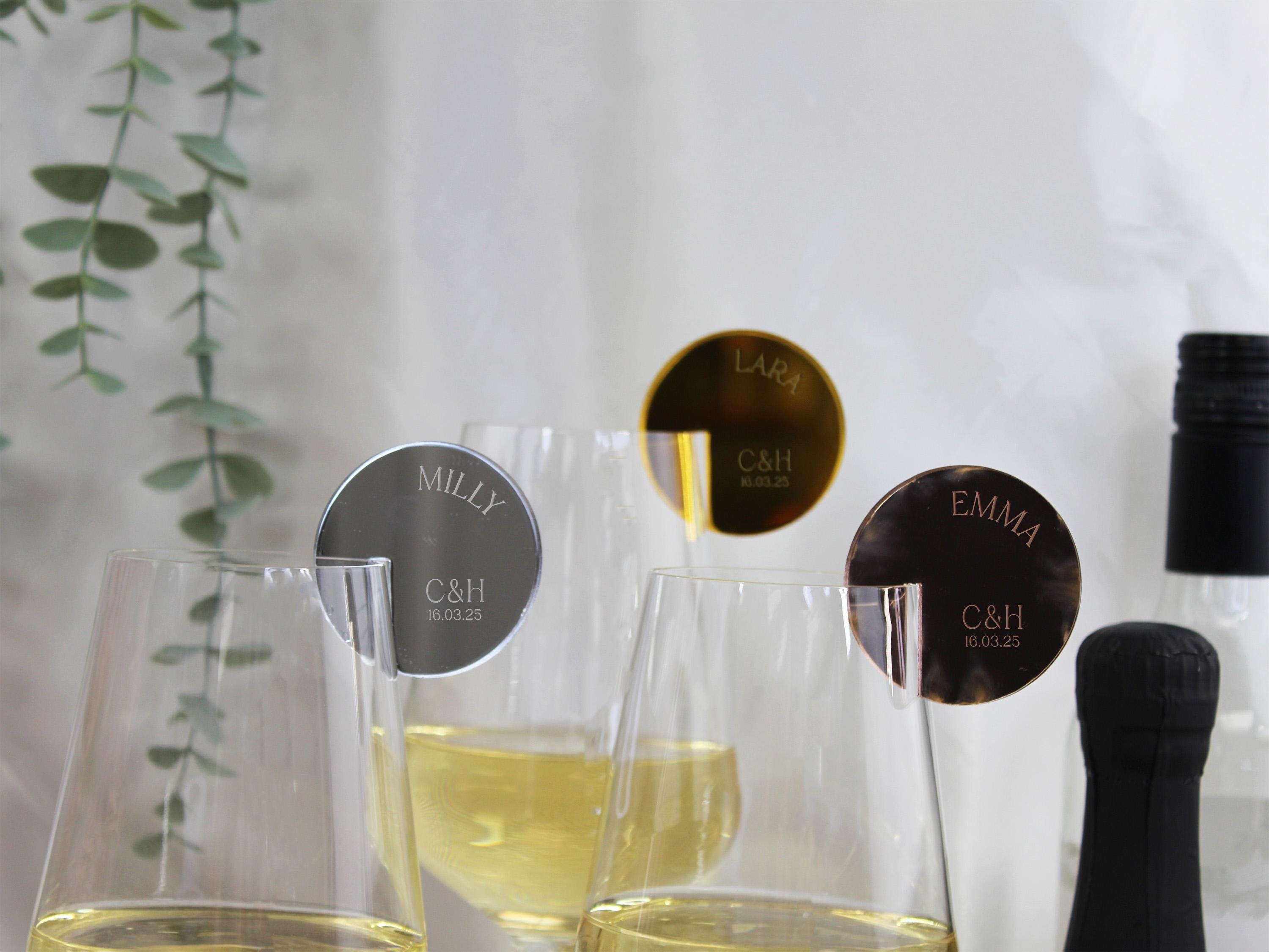 Wedding Drinks Toppers, Personalised Acrylic Drinks Marker, Bulk Wine Glass Markers, Wedding Drink T...