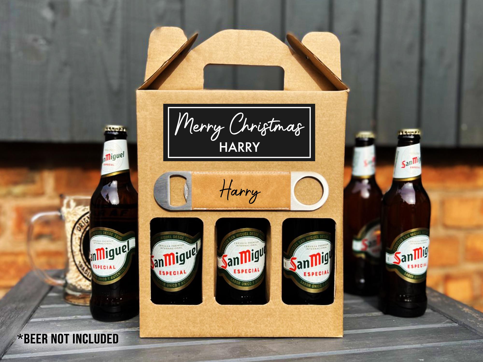 "Personalised Christmas Beer Bottle Carrier | Beer Lover Gift | Custom Beer Box | Xmas Gift for...