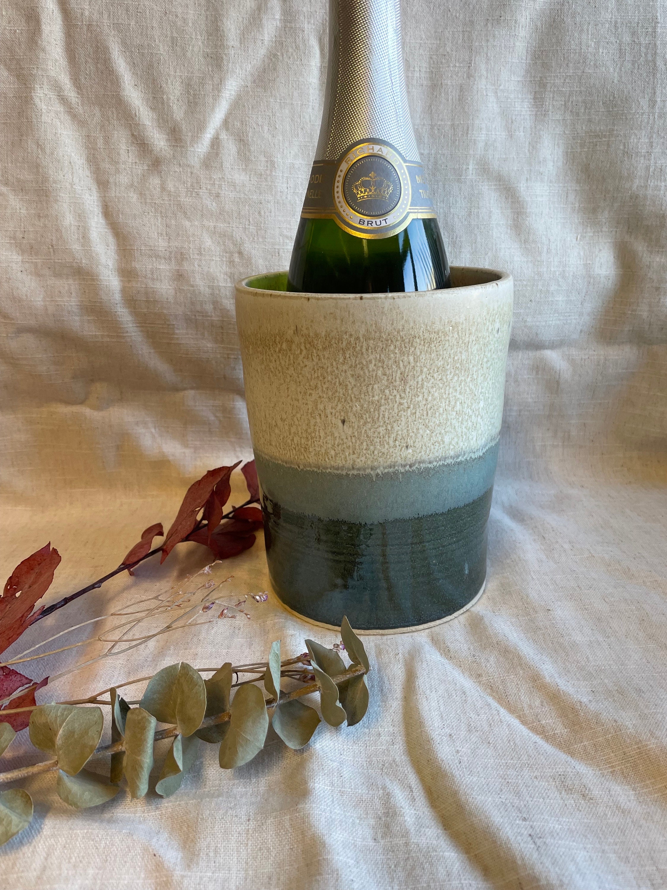 This listing is for a single, handmade ceramic wine cooler in our mountains glaze. Each piece has di...