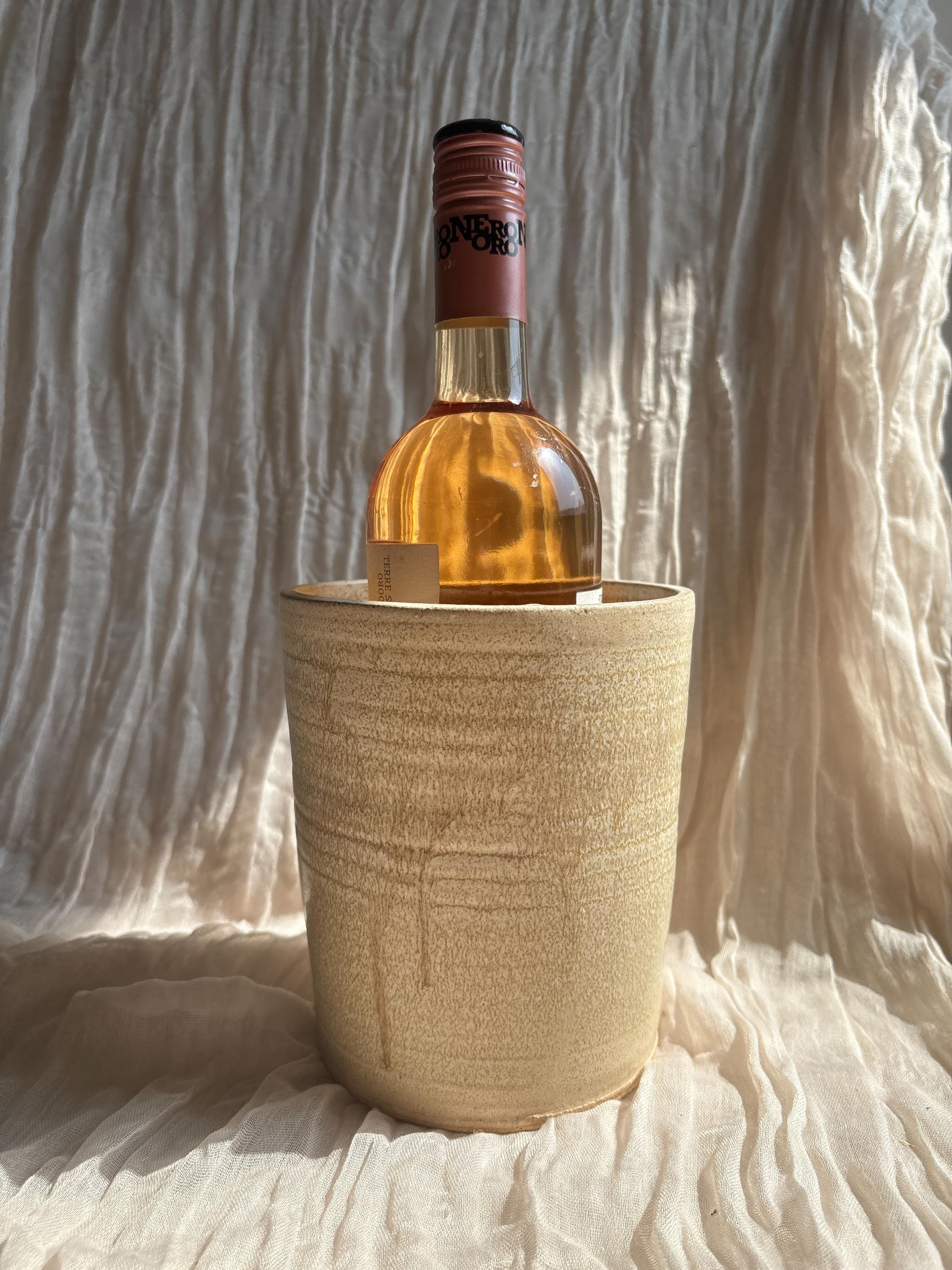 Cream wine cooler, Handmade wine vessel, neutral ceramic container,...
