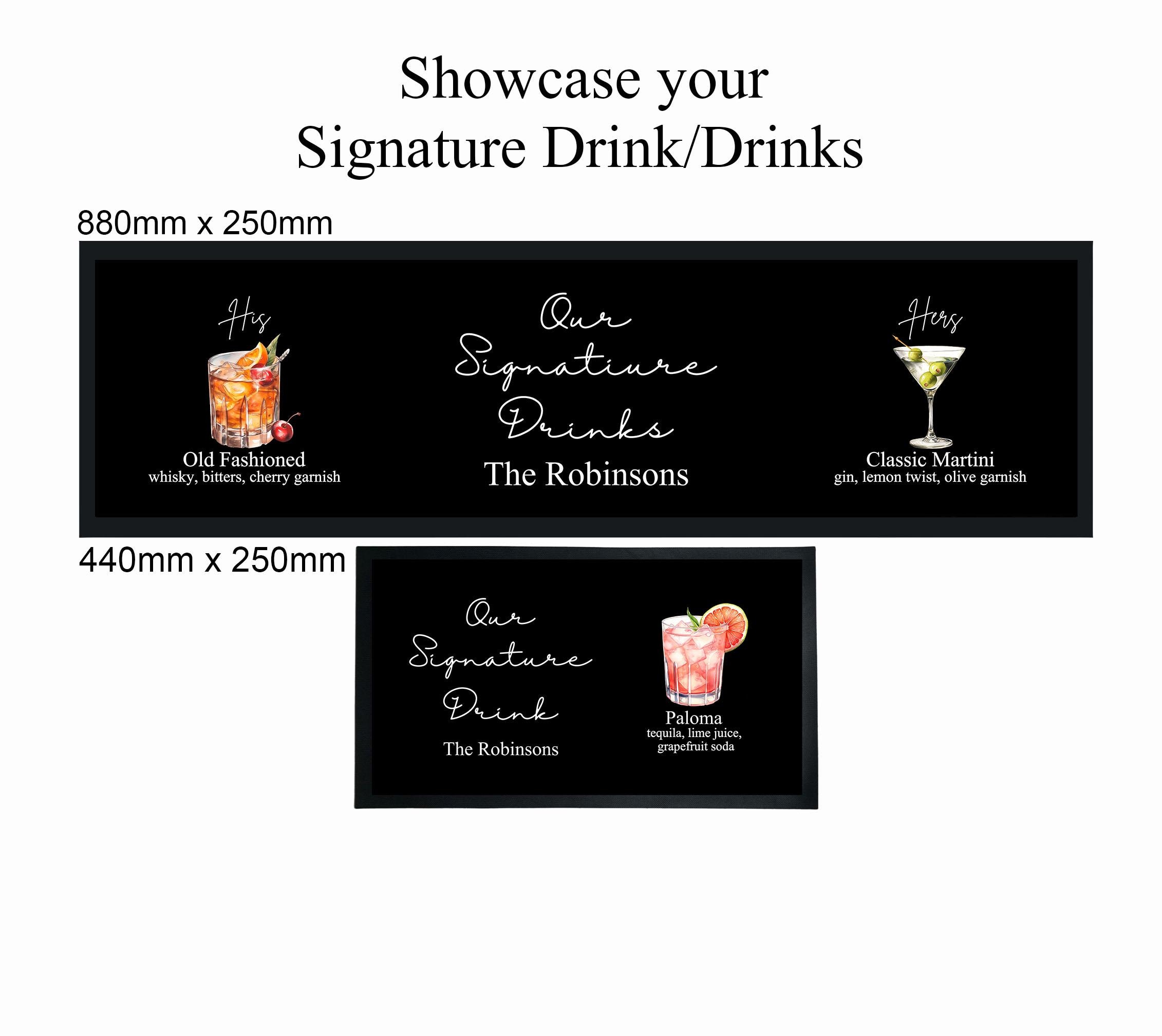Personalised Signature Drinks Wedding Bar Runner/Bar Mat/Beer Mat B...