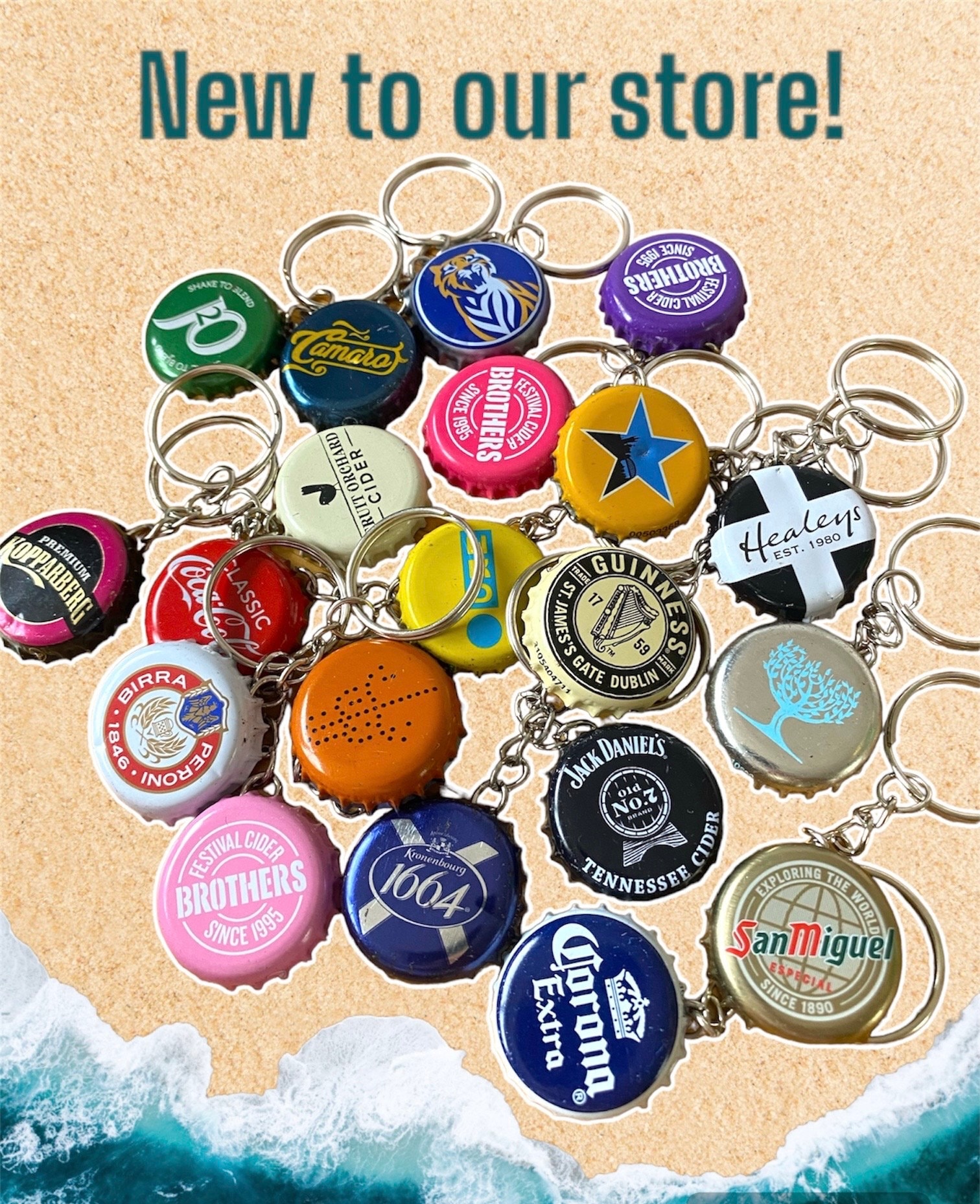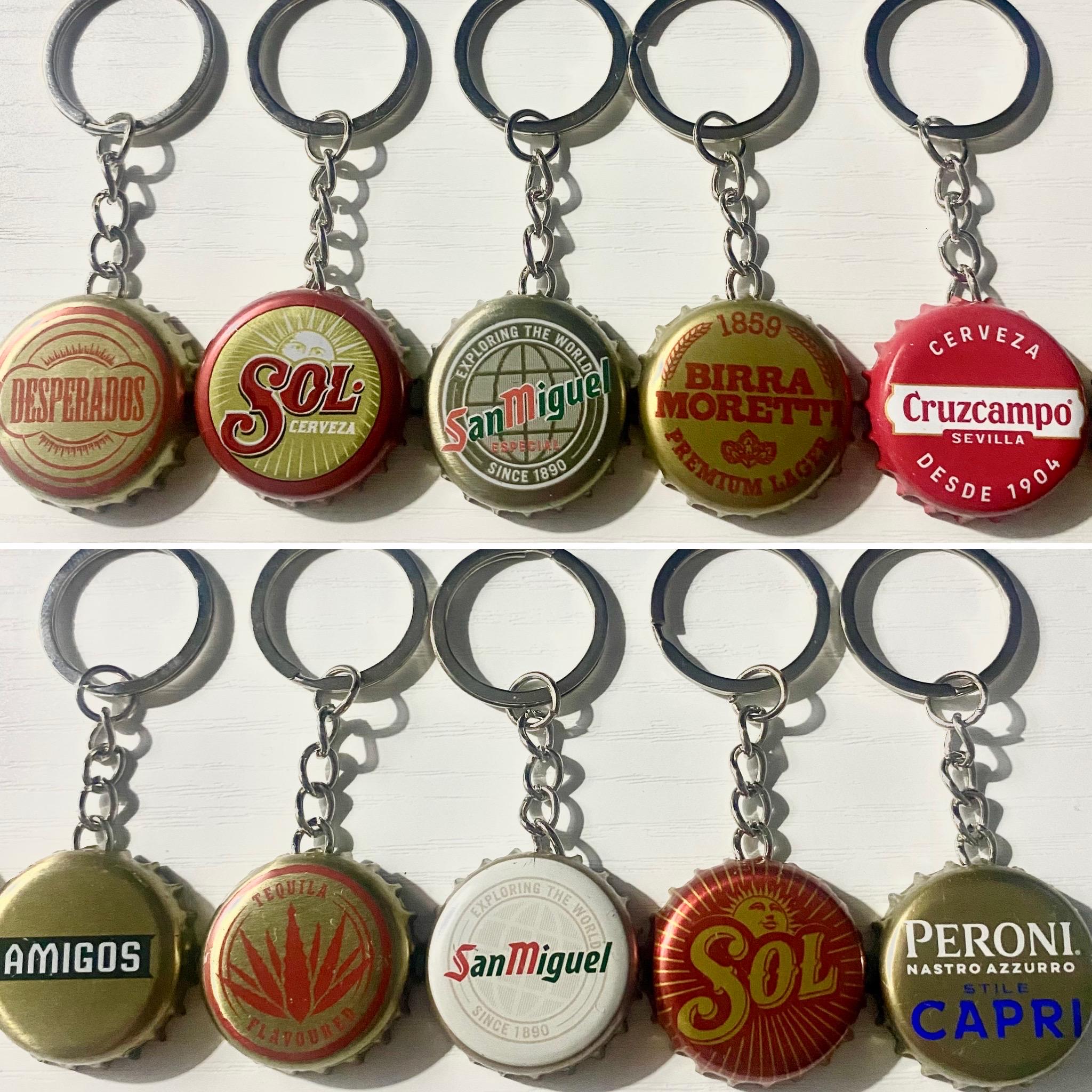 Beer bottle cap keychains / keyrings * All from circulation. Some may have minor dents or scratches....