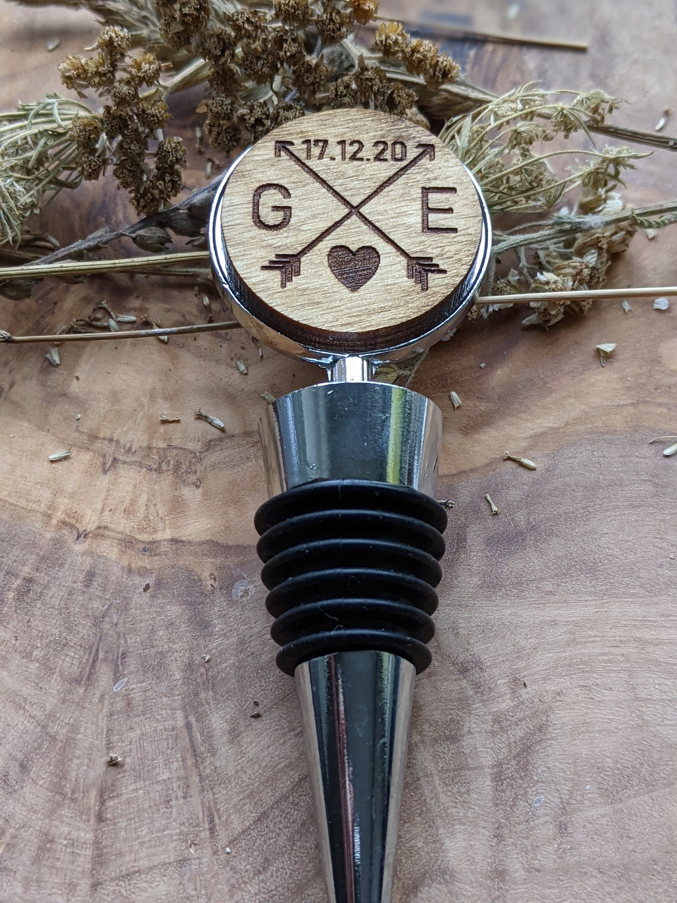 Our beautifully custom engraved wine bottle stoppers come with a bespoke, engraved wooden insert. Ou...