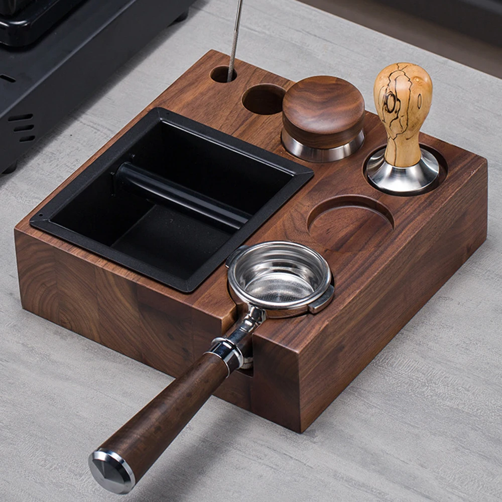 Universal Coffee Tamper Station Espresso Tamper Drip Filter Wooden Base Walnut Wood Coffee Tamper St...