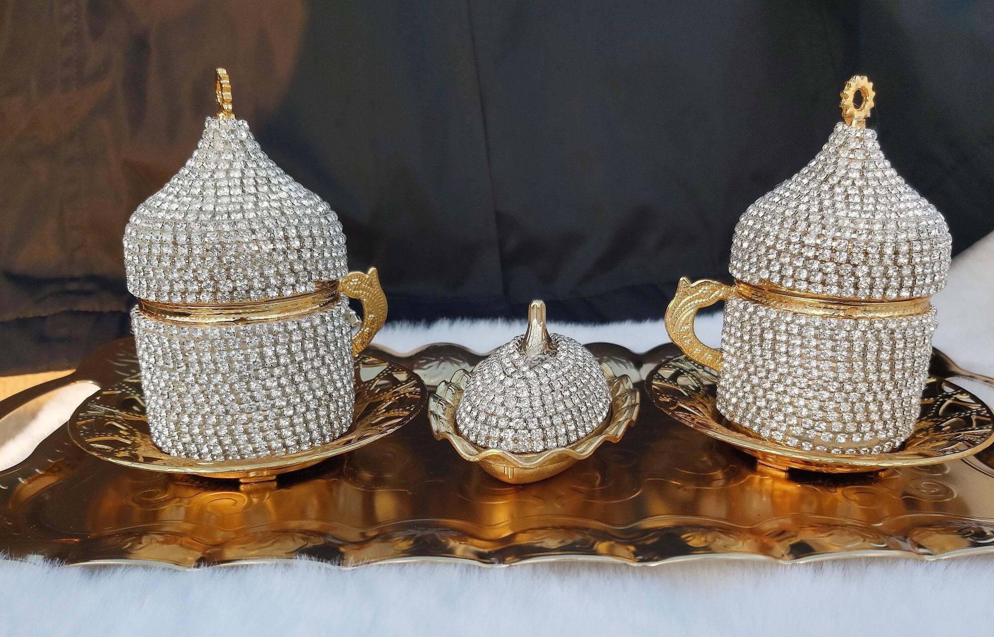Crystal Coated, Swarovski Coated, Unique Turkish Coffee Set for Six...