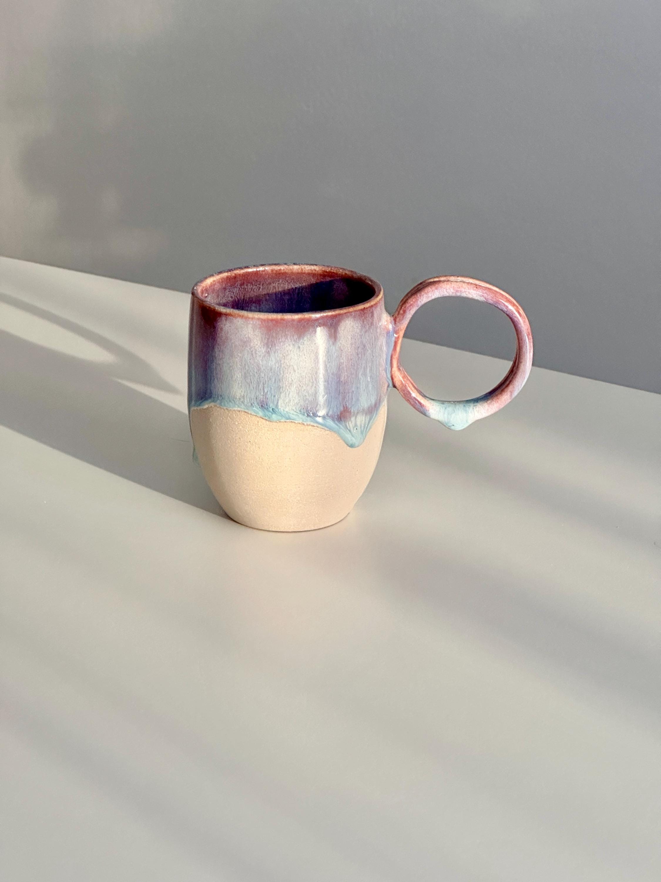 Drippy Glazed Ceramic Coffee Mug - Pink and Blue Tones (270 ml)