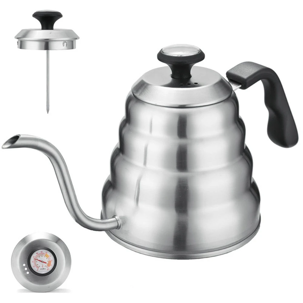 Coffee Kettle1L/1.2L Stainless Steel Pour Over Coffee Pot Kettle Drip Kettle with Thermometer For Ho...