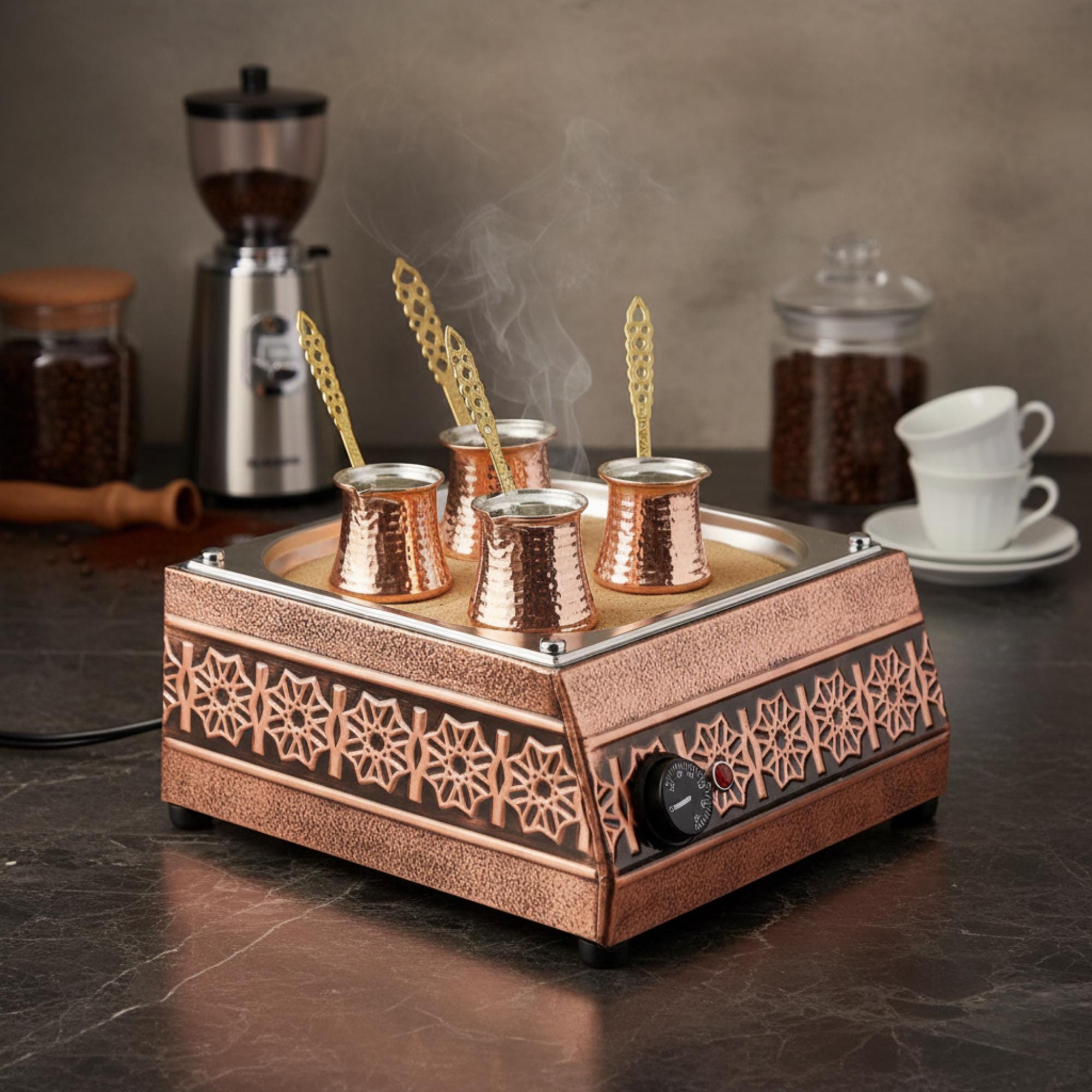 Turkish Coffee Sand Maker: Handmade Copper Pot, Authentic Brewing