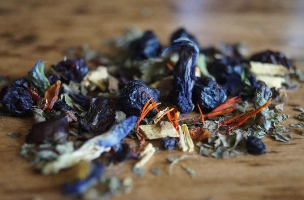 With a gorgeous blue color this tea is light and fruity! Ingredients: Blueberries, Lemon Balm, Butte...