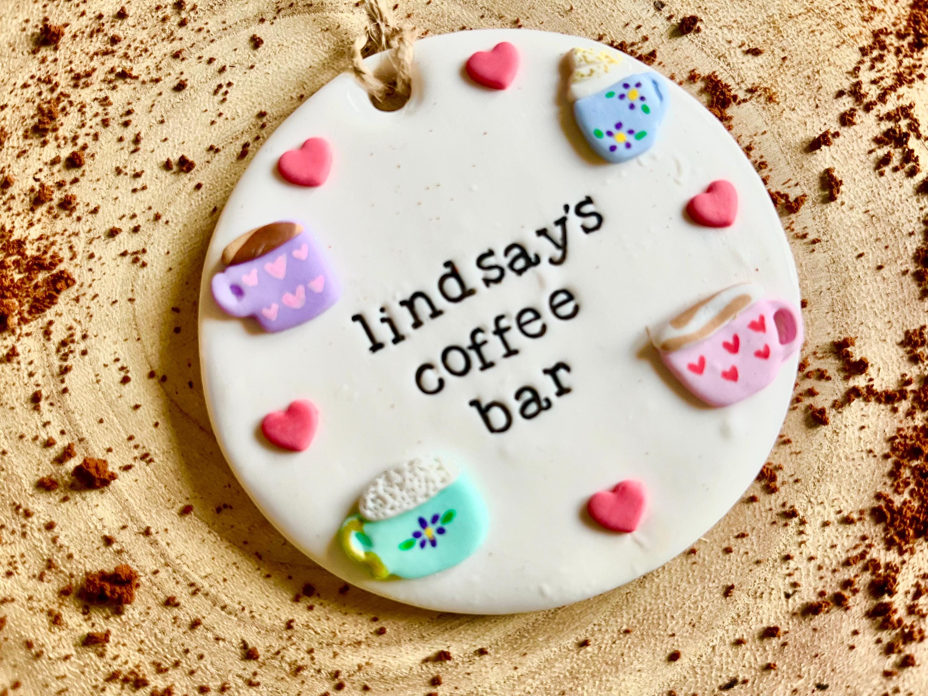 Polymer clay 8cm coffee sign -Tags available on my page. ️ Personalise. Lowercase only. ʊ...