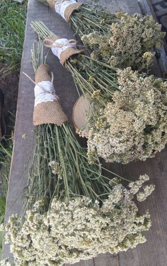"dried yarrow dried flowers dried white bunch wild flowers dried bouquet herb herbal tea altern...