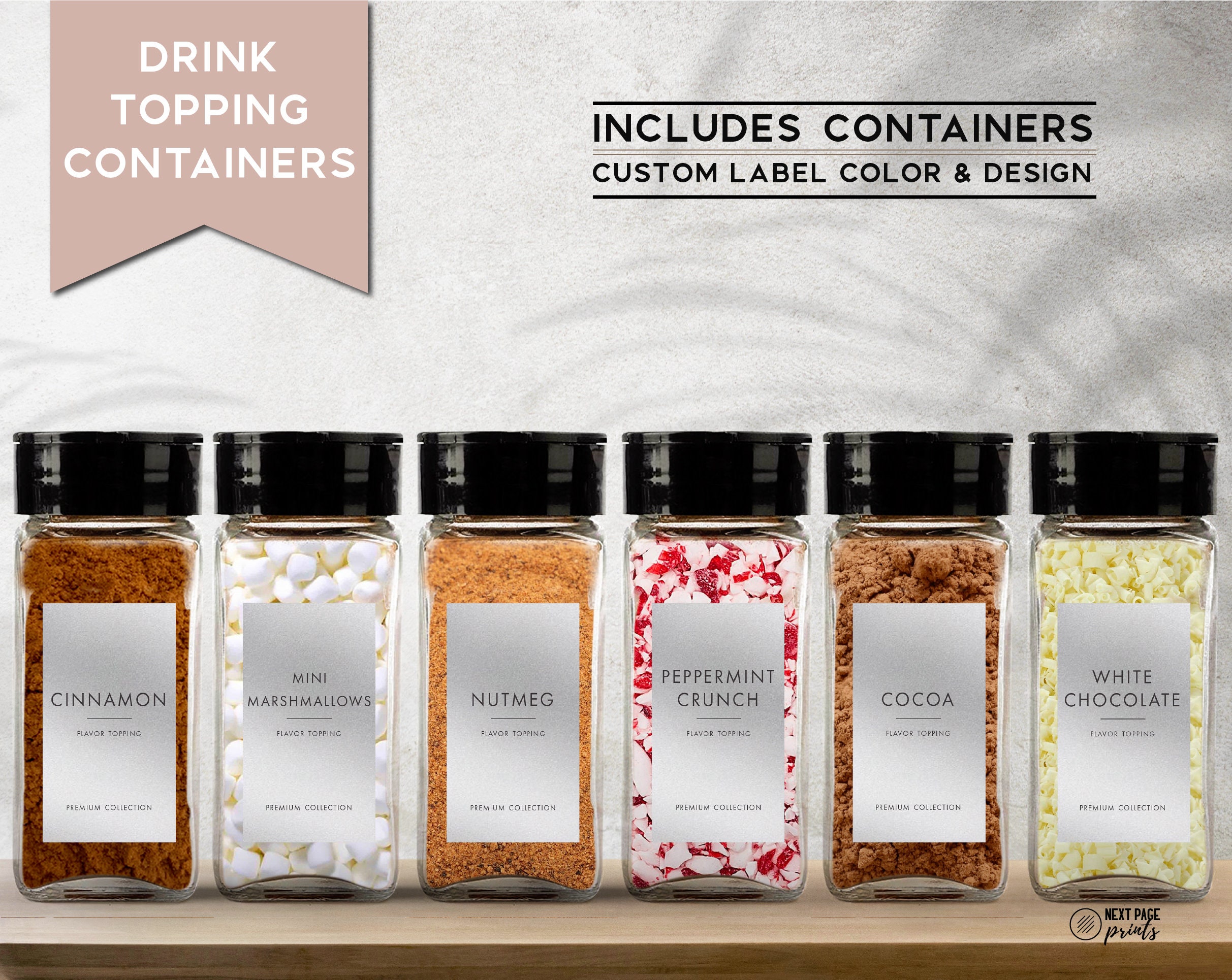 3 pc Modern Coffee Topping Containers + Custom Label * Coffee Sprin...