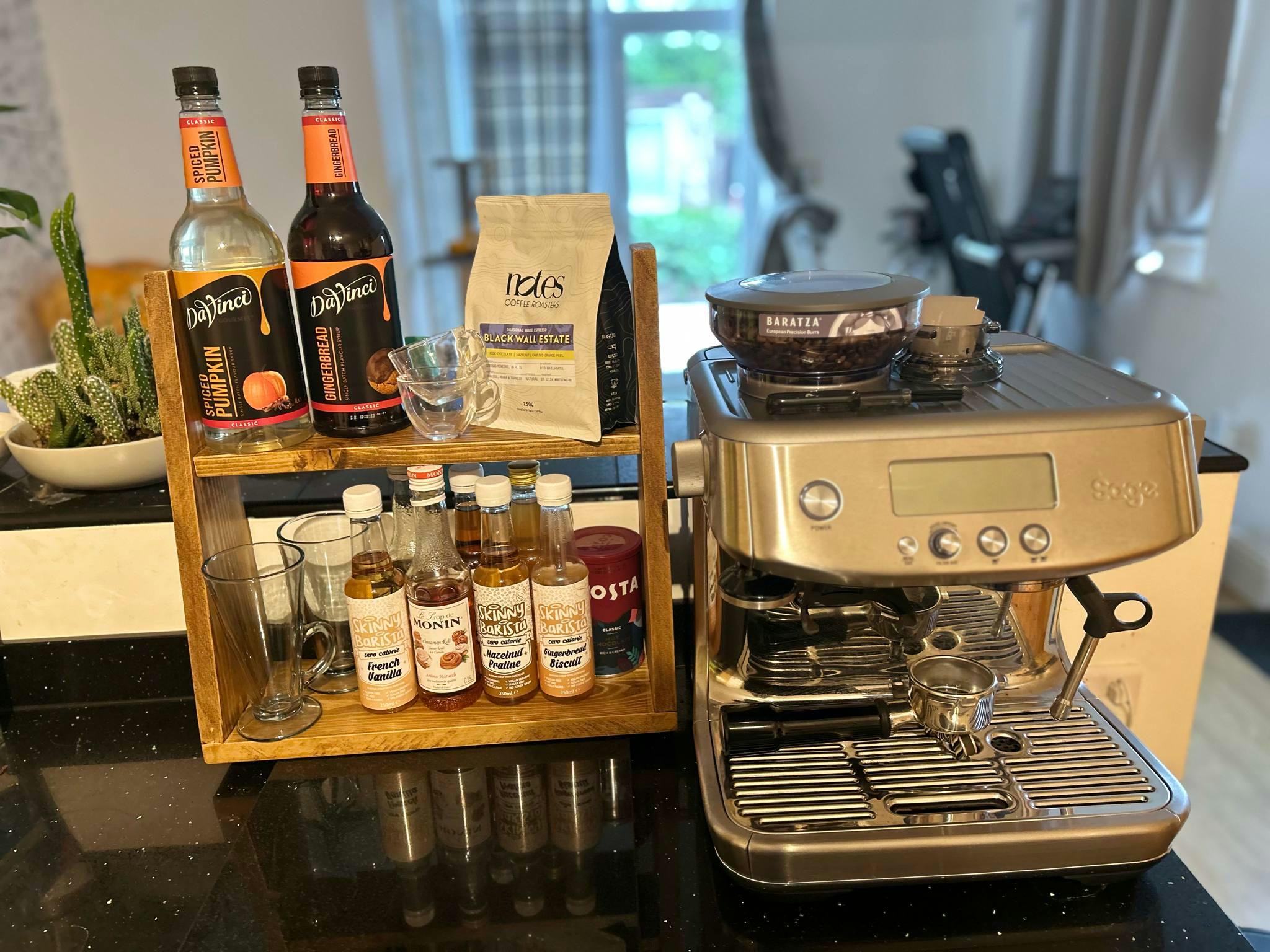 Elevate your morning routine with this handcrafted rustic coffee station, designed to organize and d...