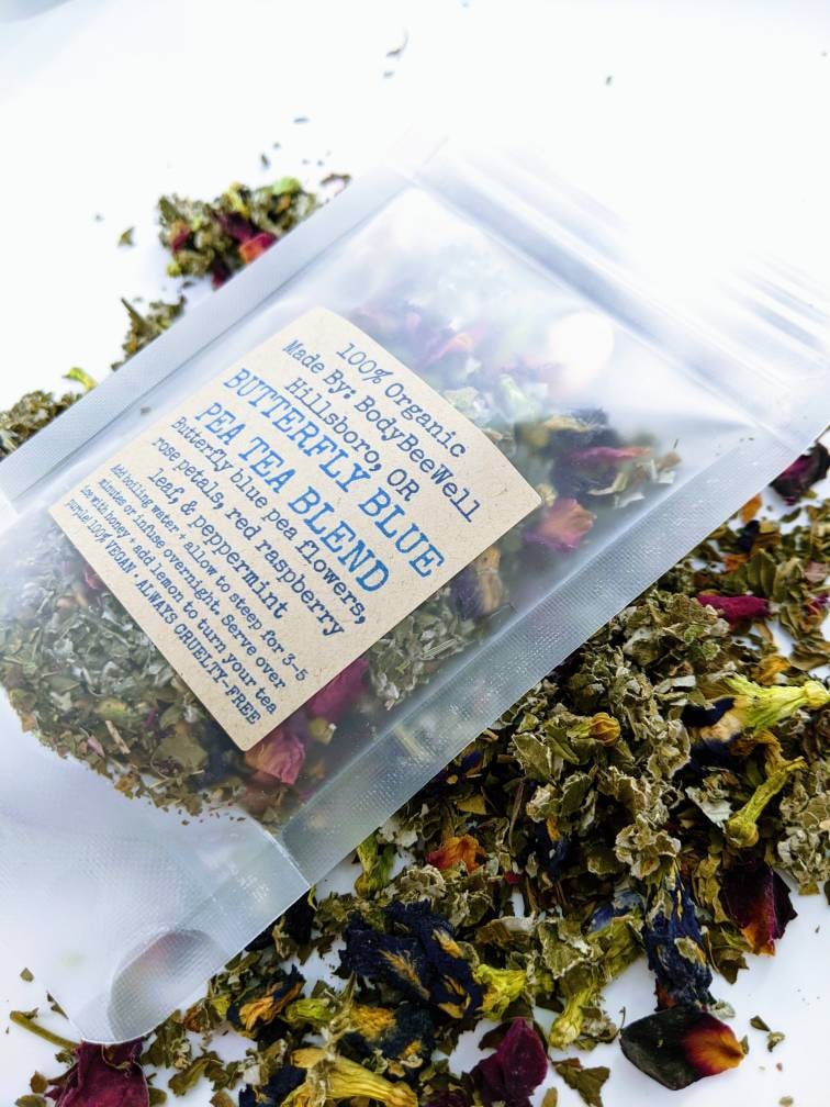 BUTTERFLY BLUE PEA LOOSE LEAF TEA BLEND is 100% organic& decaf herbal tea. It has a flowery &...
