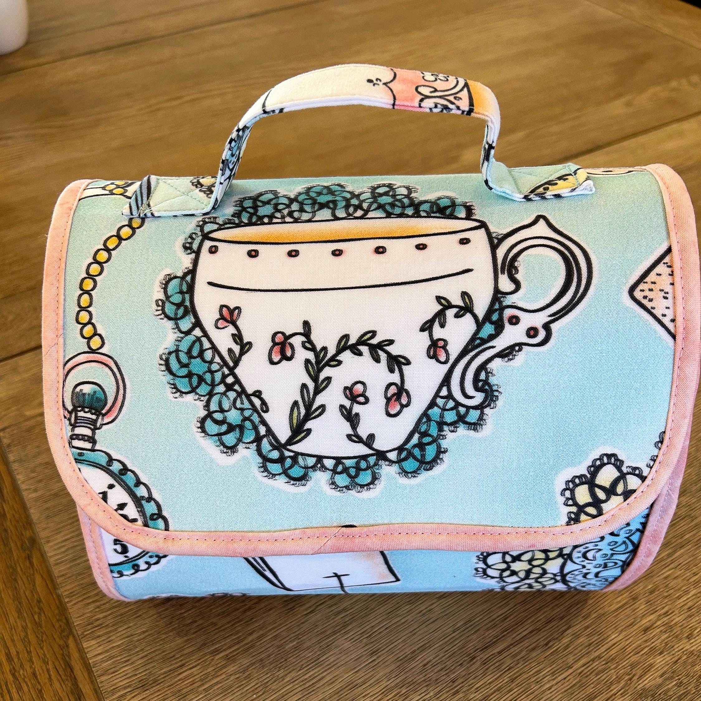 Fabric Tea cup caddy to carry tea cup, tea bags, spoon and more.