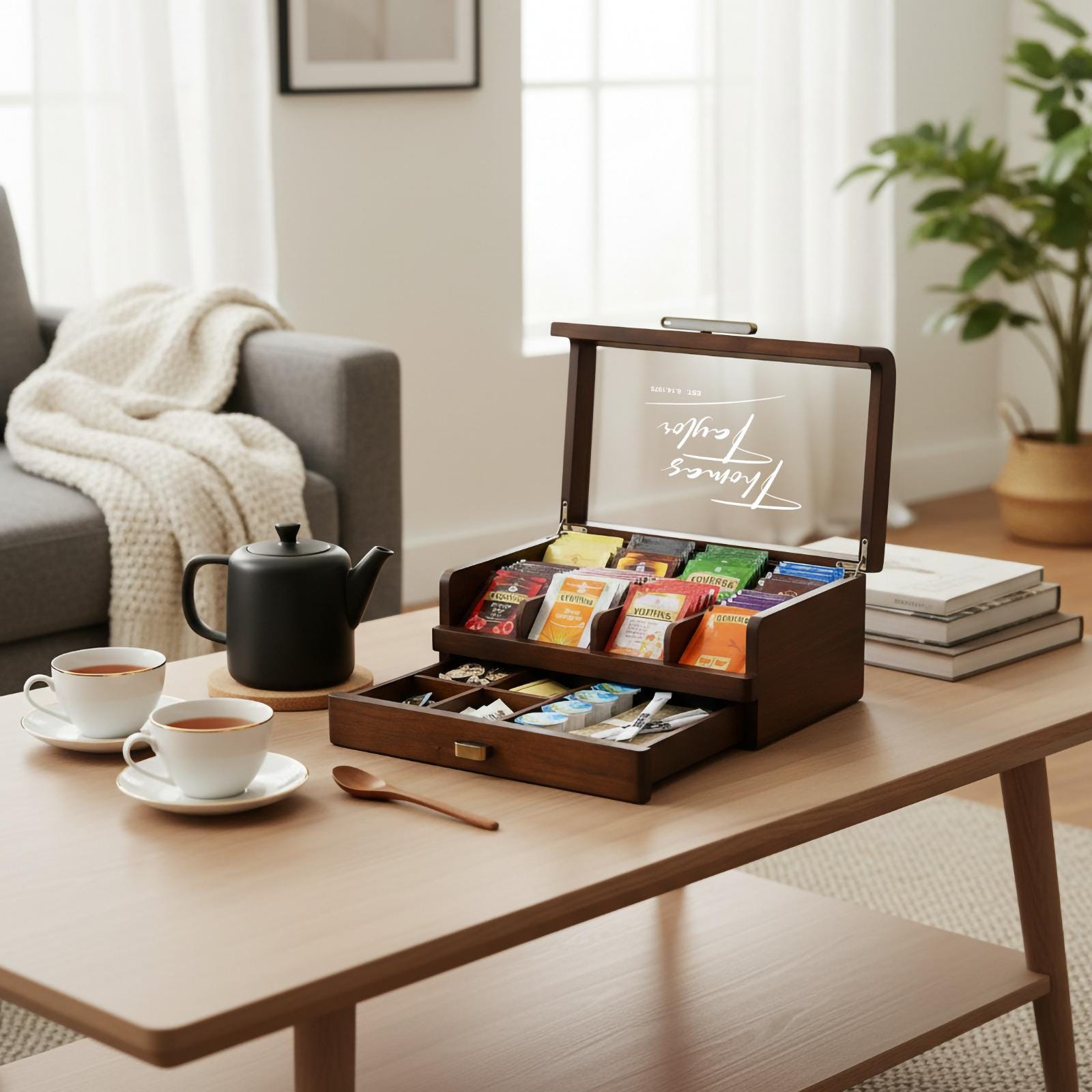 Engagement gifts for best friend tea gift for book club engraved wooden tea bag caddy. Tea sachet ho...